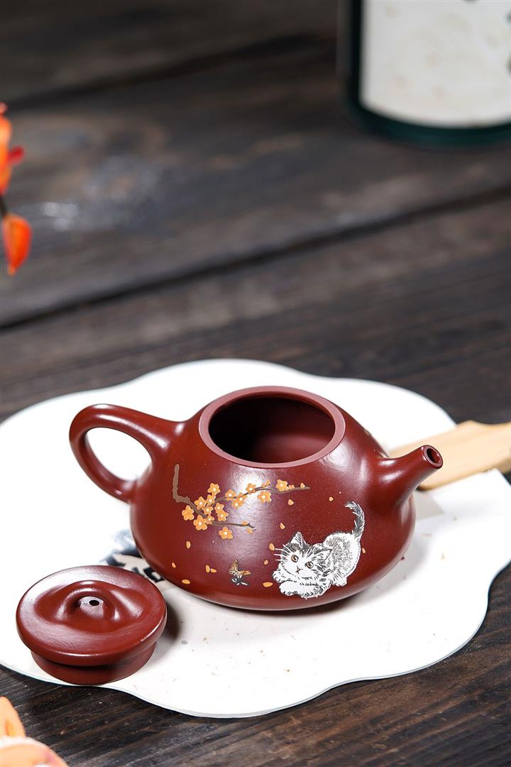 【作品介紹】此款壺形線條流暢,壺把,壺嘴,壺身壹氣呵成栩栩如生,是收藏把玩的好壺,泥料色澤古樸典雅,日久使用,漸露鋒芒,養成變化快,溫潤莊重,用其泡茶,使用的年代久,壺身就溫潤,泡出來的茶湯也就醇郁芳馨。