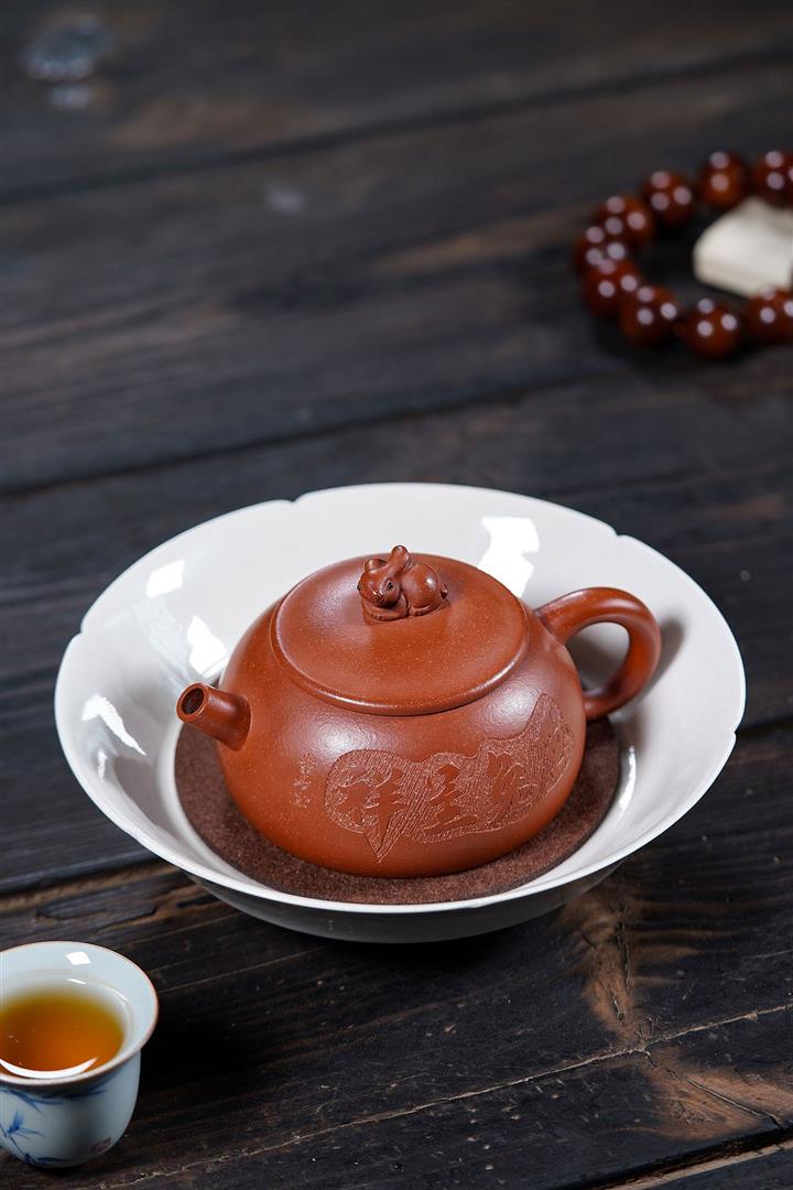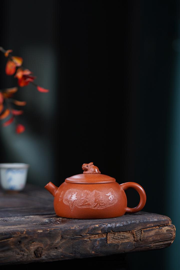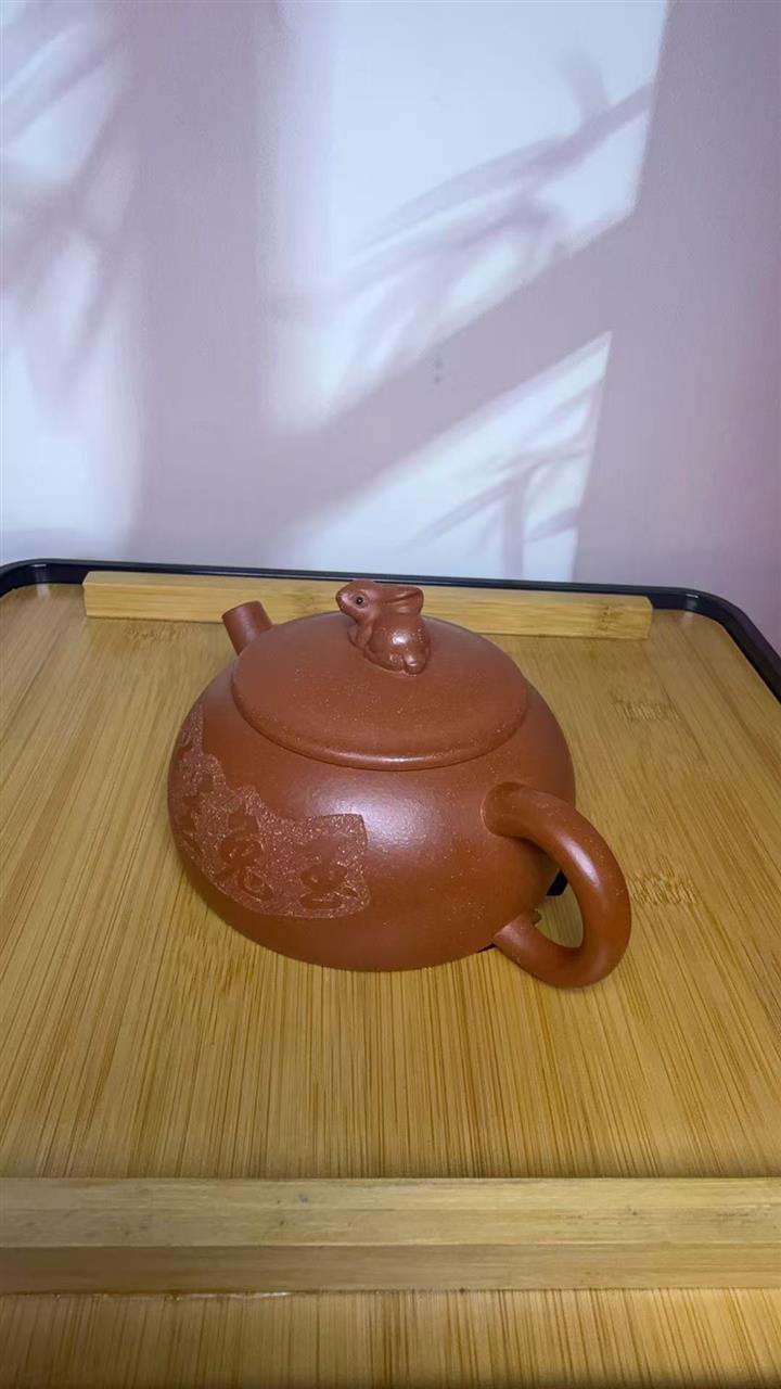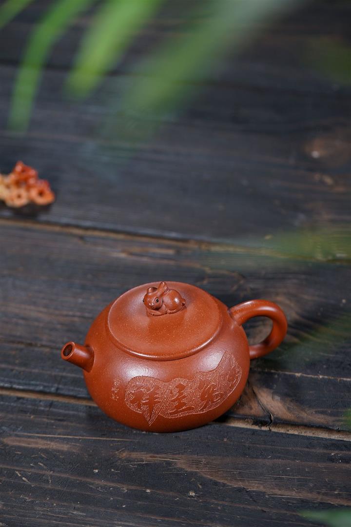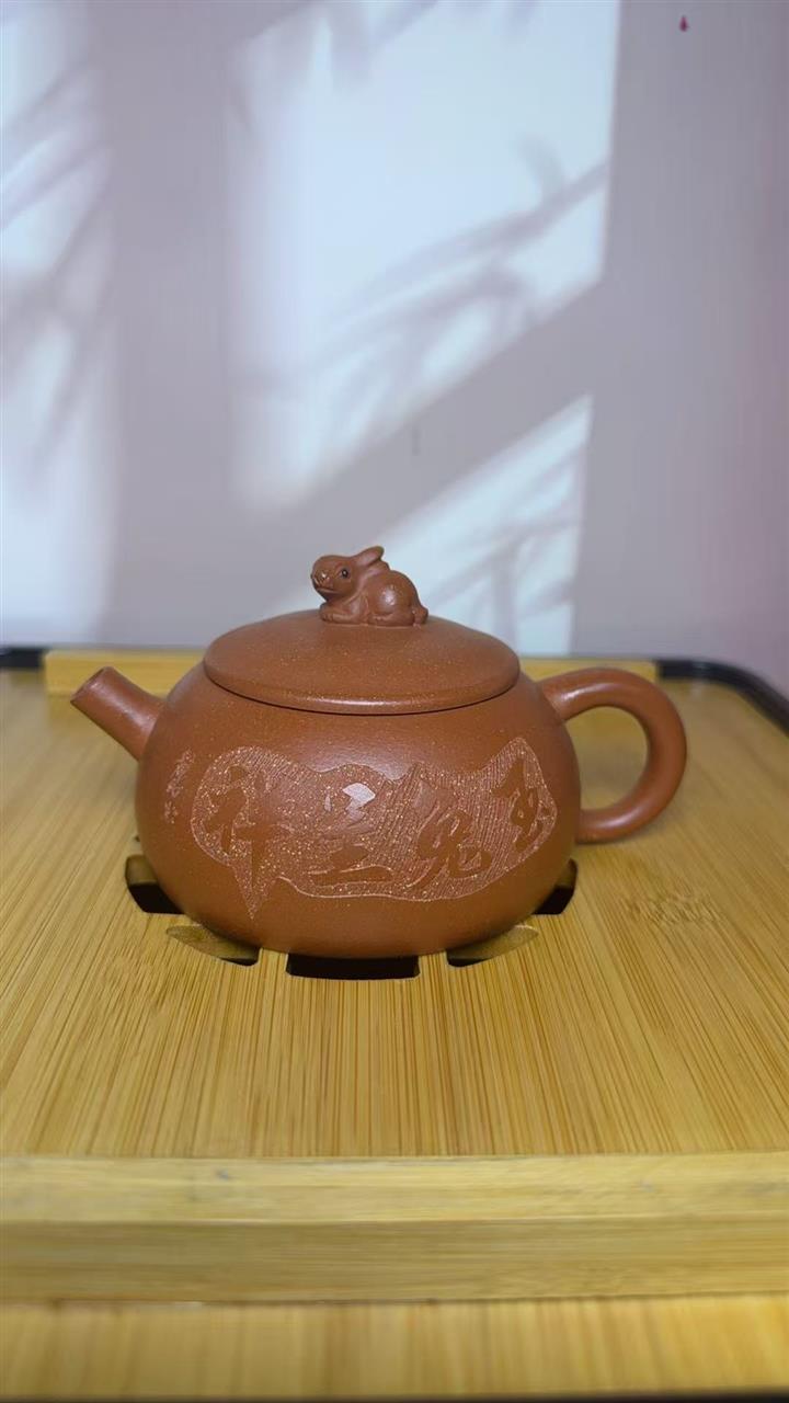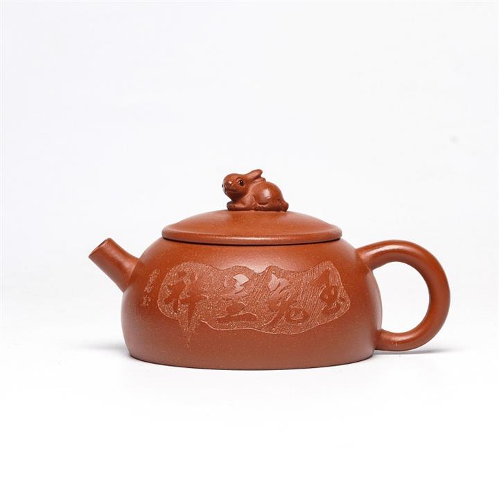 210cc原礦降坡泥玉兔呈祥半月茶壺POT8943