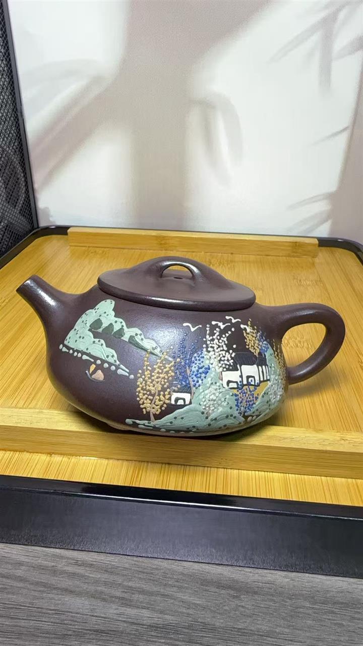170cc原礦老紫泥竹報平安包漿茶壺POT8544
