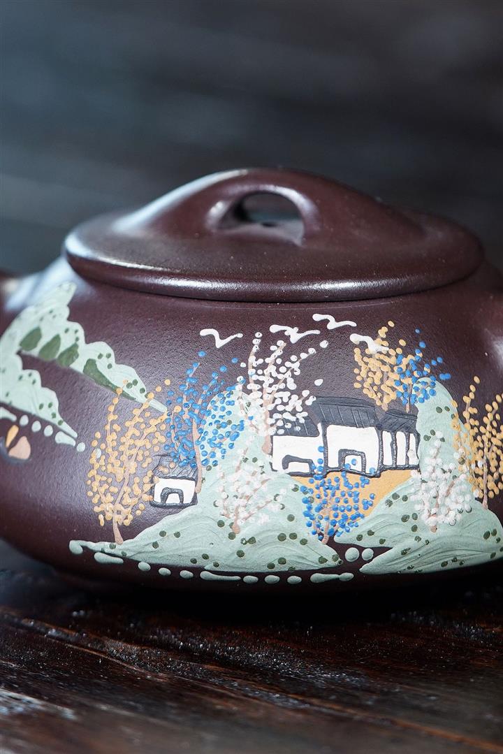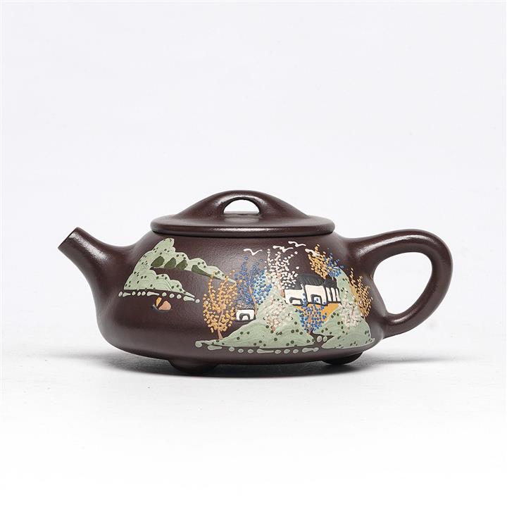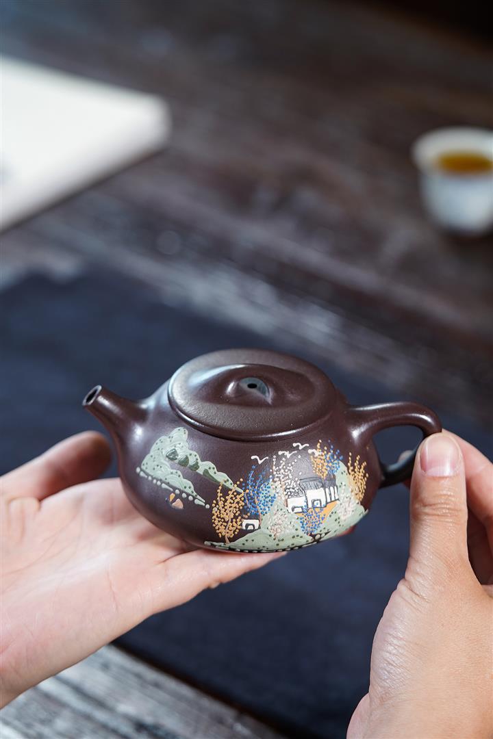 80cc原礦朱泥泥繪小漢瓦茶壺POT8548