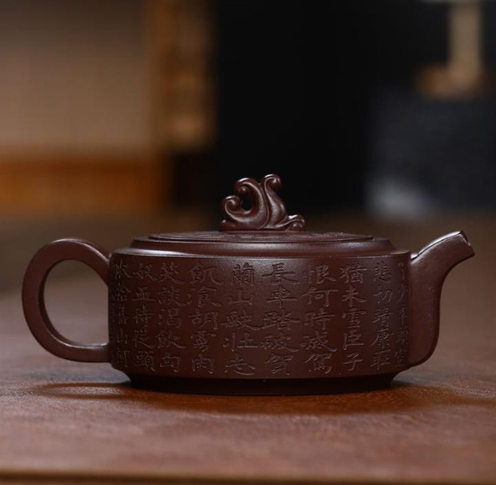 200cc原礦紫泥刻繪周盤茶壺POT8958