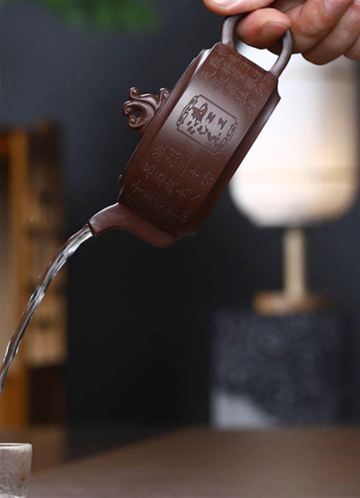 紫砂壺原礦紫朱泥泥繪梅花八方石瓢壺家用功夫泡茶壺茶具pot3833