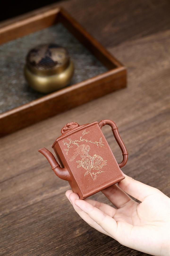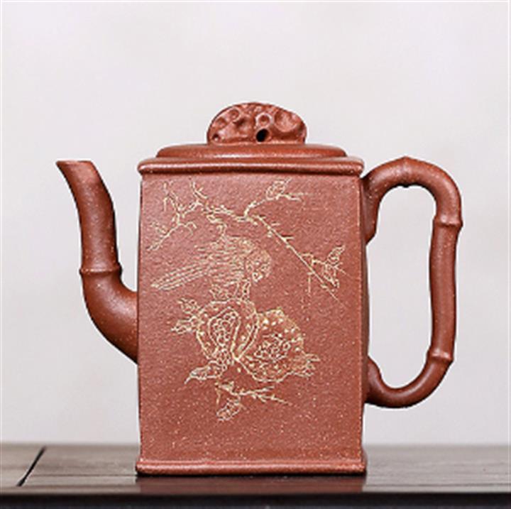 400cc原礦墨綠泥刻繪如意松趣茶壺POT8304