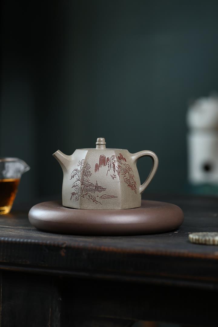 原礦赤龍血山水極扁茶壺POT7048