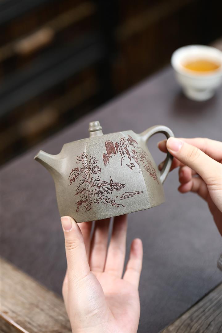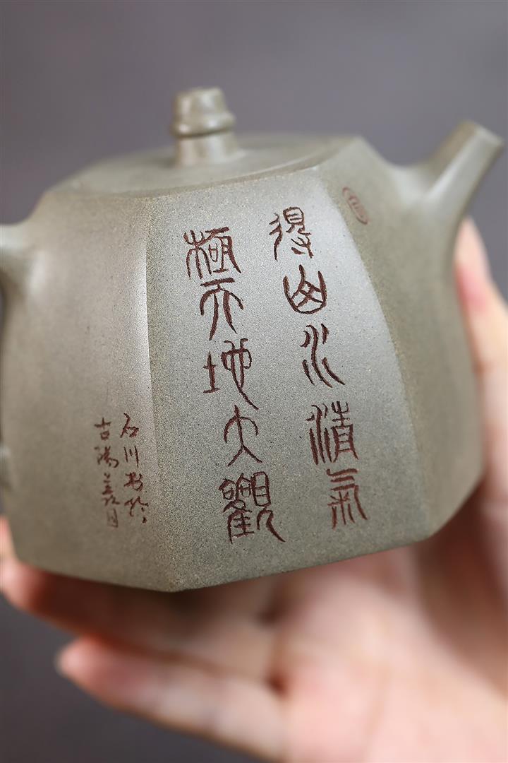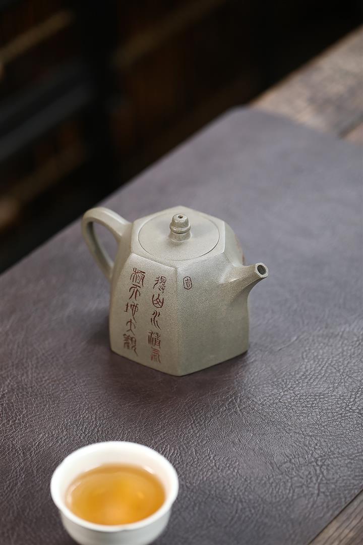 300cc原礦蟹殼青六方漢鐸茶壺POT8983