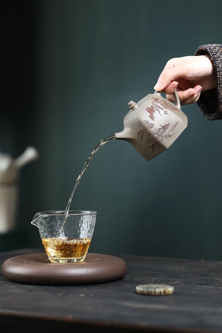【泥料特點】砂土氣重,似淳實農民,日久使用,漸露鋒芒,養成變化,溫潤莊重。紫砂是壹種雙重氣孔結構的多孔性材質,氣孔微細,密度高。用紫砂壺沏茶,不失原味,且香不渙散,得茶之真香真味。紫砂使用越久,壺身色澤越發光亮照人,氣韻溫雅。紫砂壺長久使用器身會因撫摸擦拭,變得越發溫潤光澤。