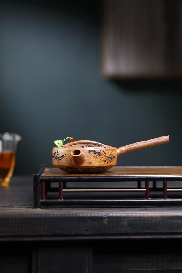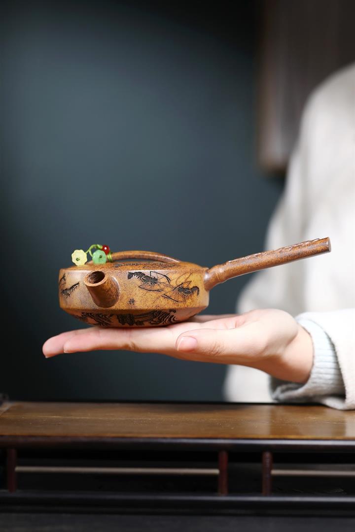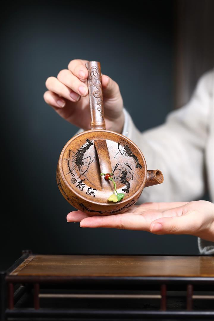 180cc原礦龍骨金砂金蝦唐羽茶壺POT8986