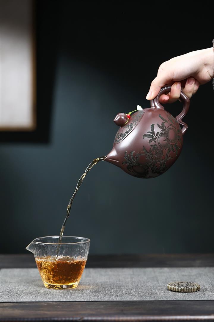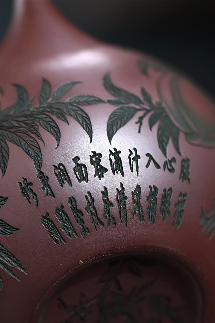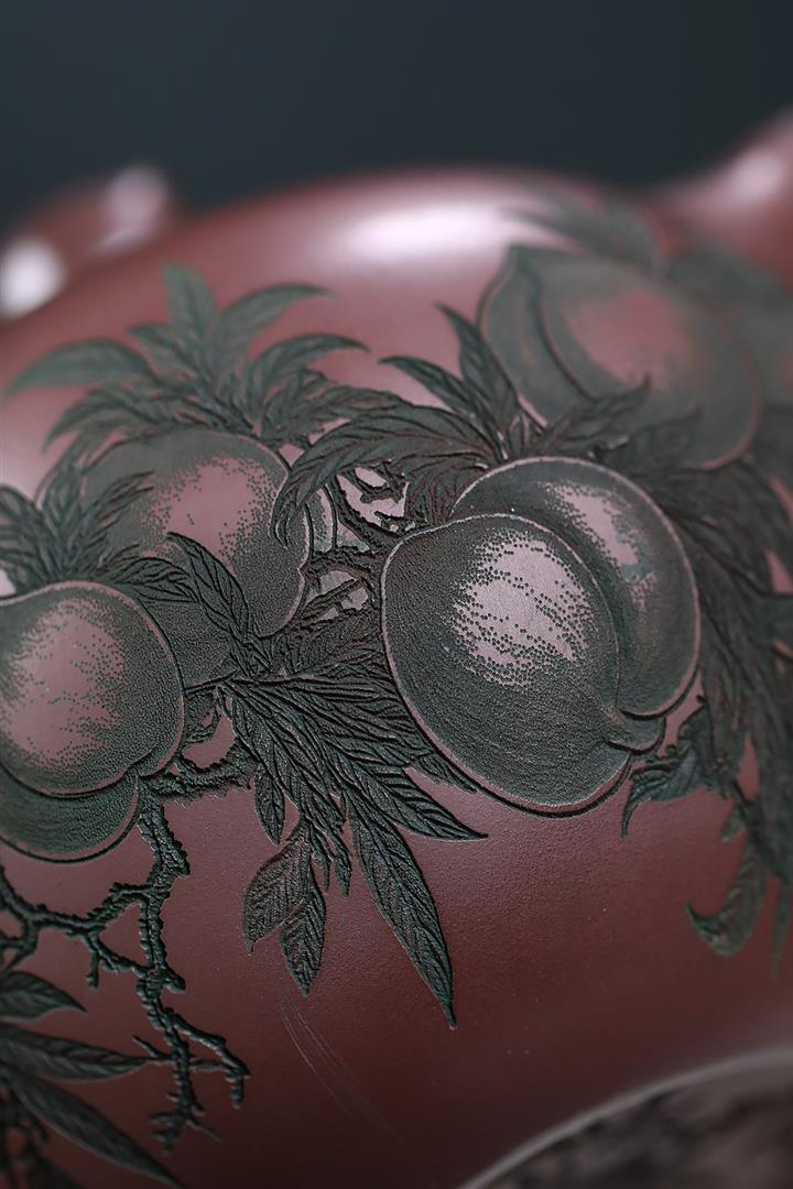 原礦紫泥筋紋花蕾壺純手工刻繪pot3706