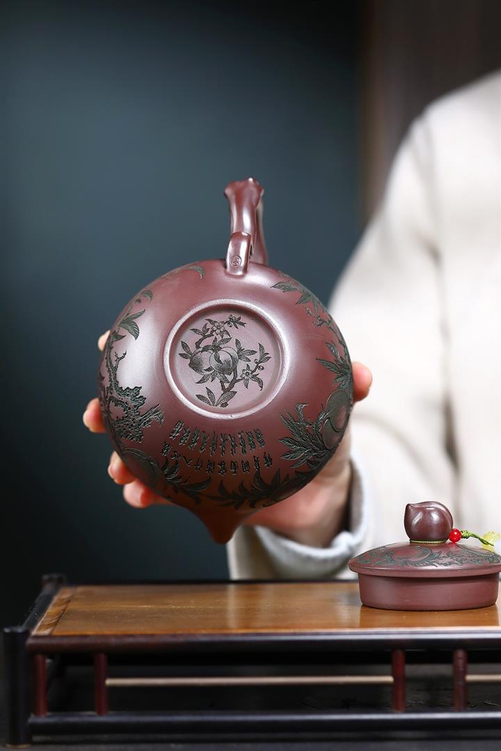 原礦底槽清手工刻繪梨形紫砂壺210cc pot3666
