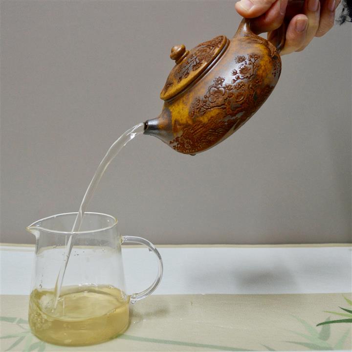 【泥料特點】砂土氣重,似淳實農民,日久使用,漸露鋒芒,養成變化,溫潤莊重。紫砂是壹種雙重氣孔結構的多孔性材質,氣孔微細,密度高。用紫砂壺沏茶,不失原味,且香不渙散,得茶之真香真味。紫砂使用越久,壺身色澤越發光亮照人,氣韻溫雅。紫砂壺長久使用器身會因撫摸擦拭,變得越發溫潤光澤。