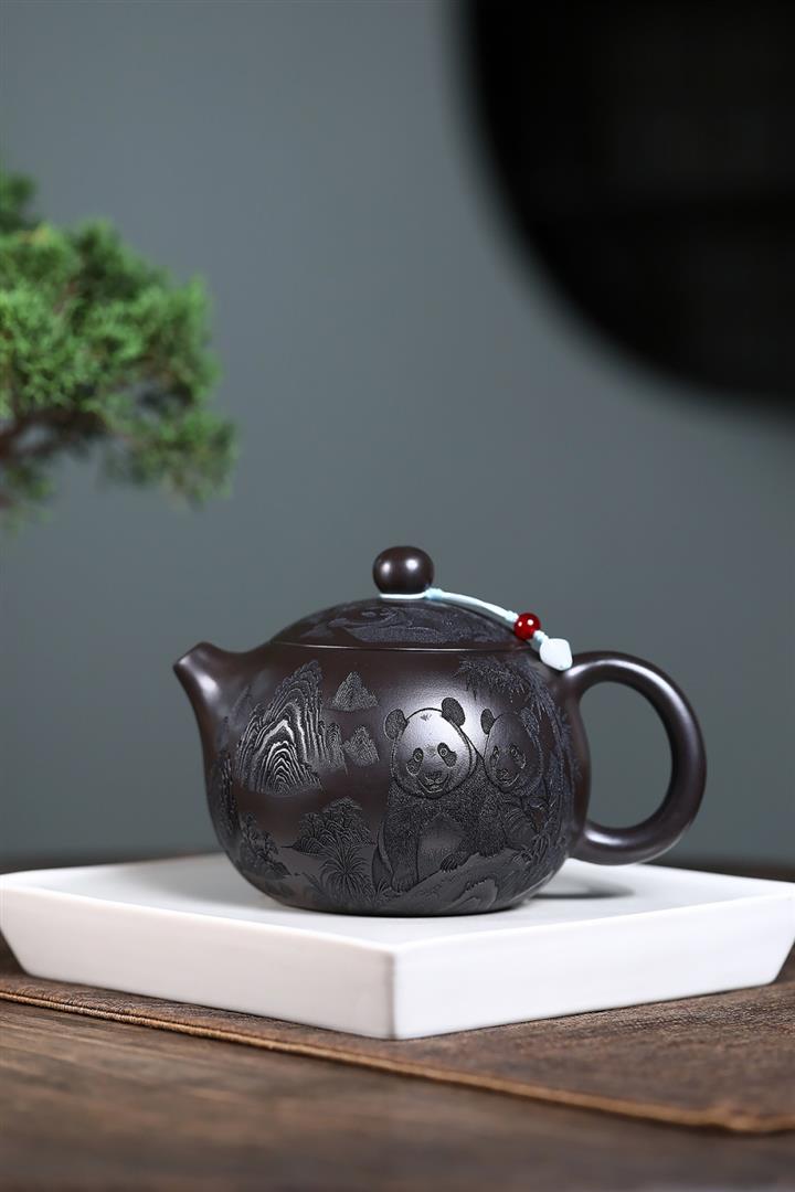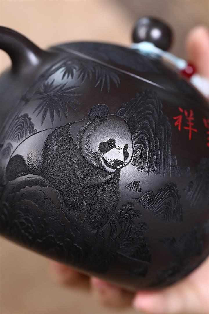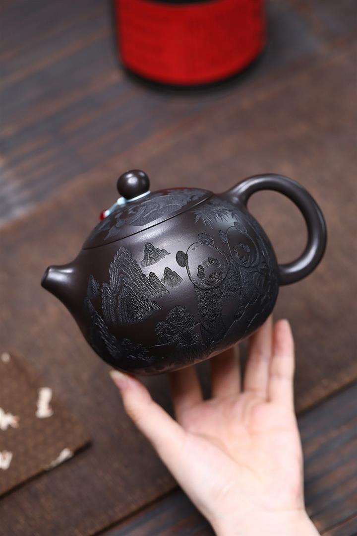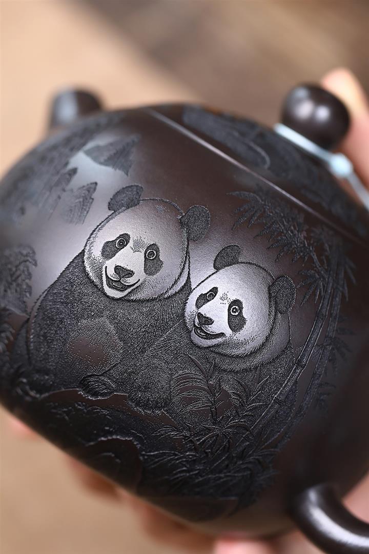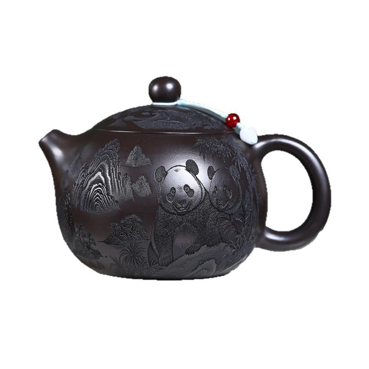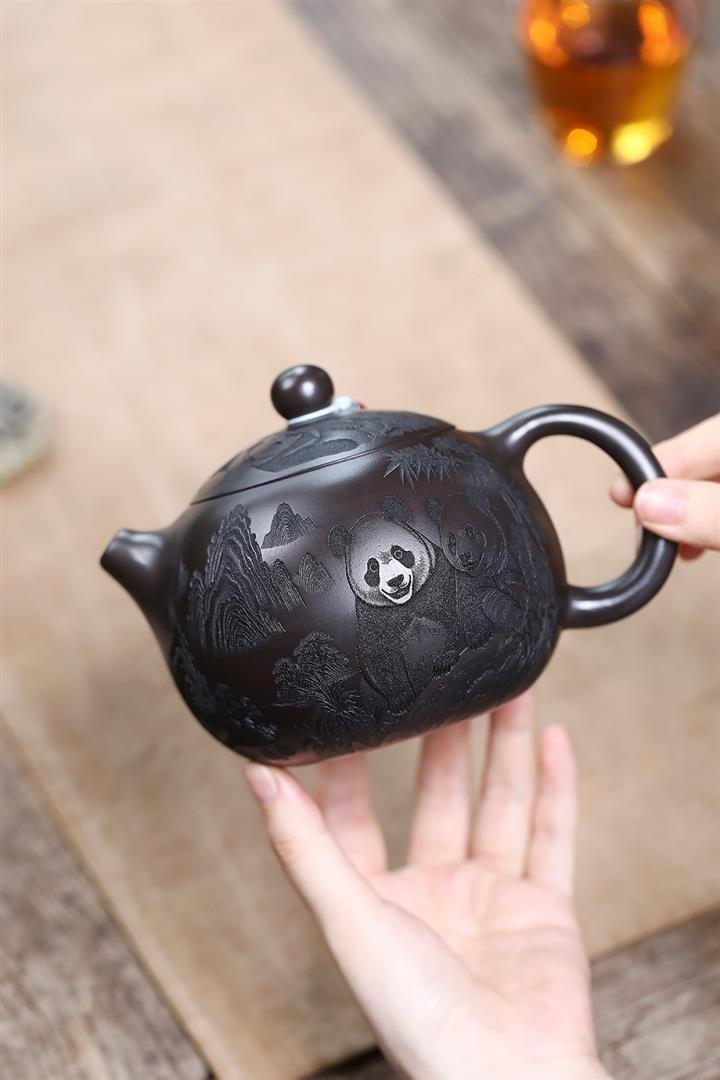 600cc原礦優質石黃泥滿刻熊貓西施茶壺POT9002