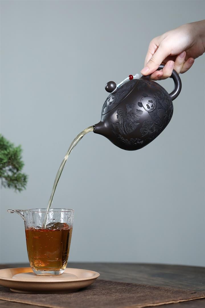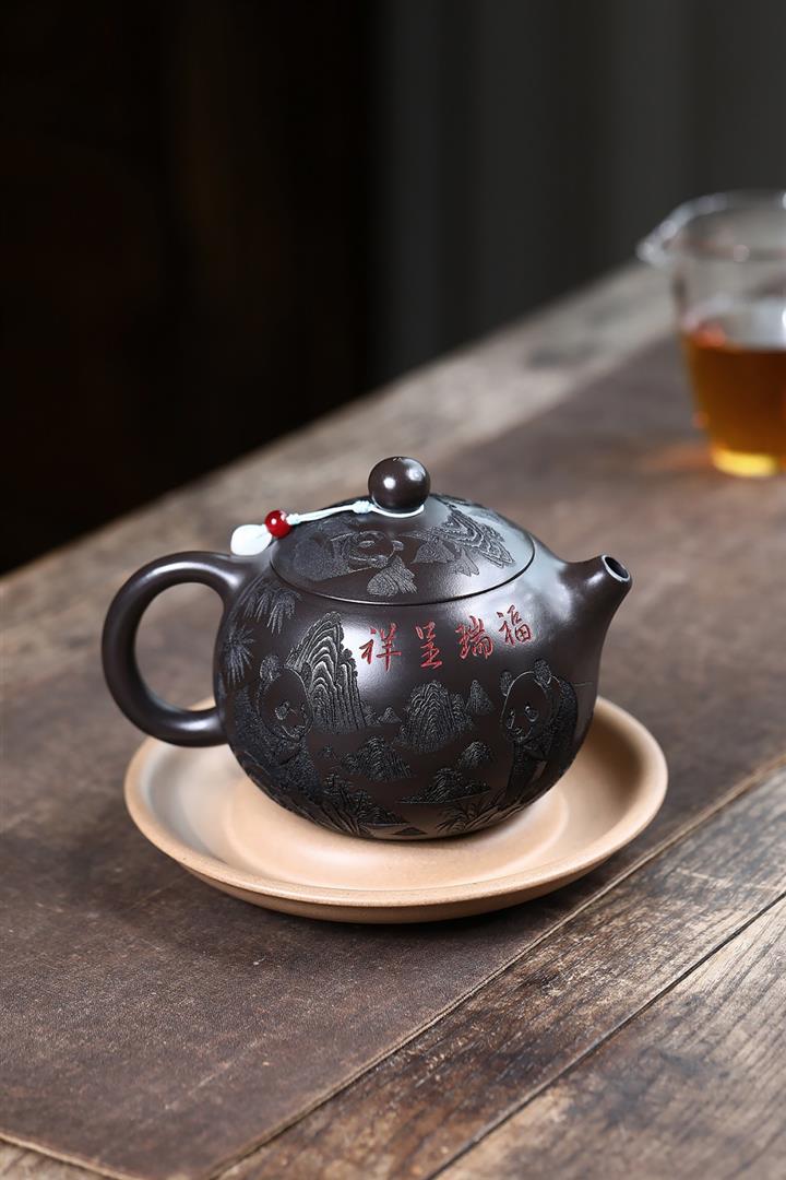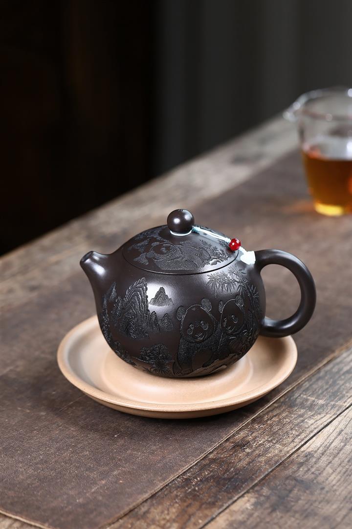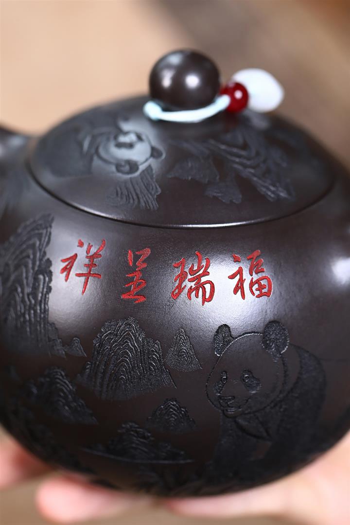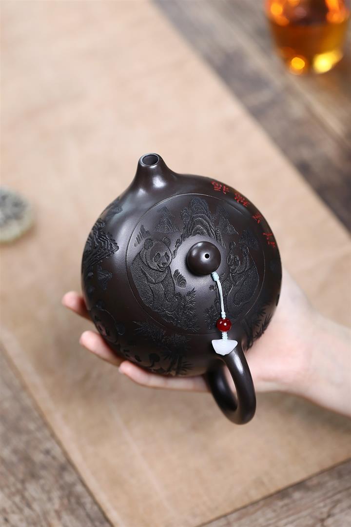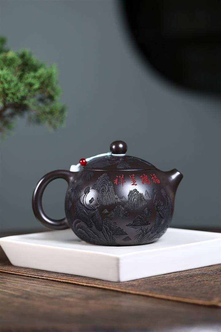 600cc原礦優質石黃泥滿刻熊貓西施茶壺POT9002