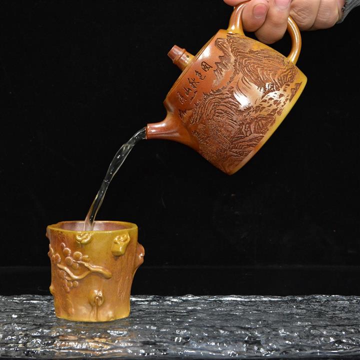 【泥料特點】砂土氣重,似淳實農民,日久使用,漸露鋒芒,養成變化,溫潤莊重。紫砂是壹種雙重氣孔結構的多孔性材質,氣孔微細,密度高。用紫砂壺沏茶,不失原味,且香不渙散,得茶之真香真味。紫砂使用越久,壺身色澤越發光亮照人,氣韻溫雅。紫砂壺長久使用器身會因撫摸擦拭,變得越發溫潤光澤。