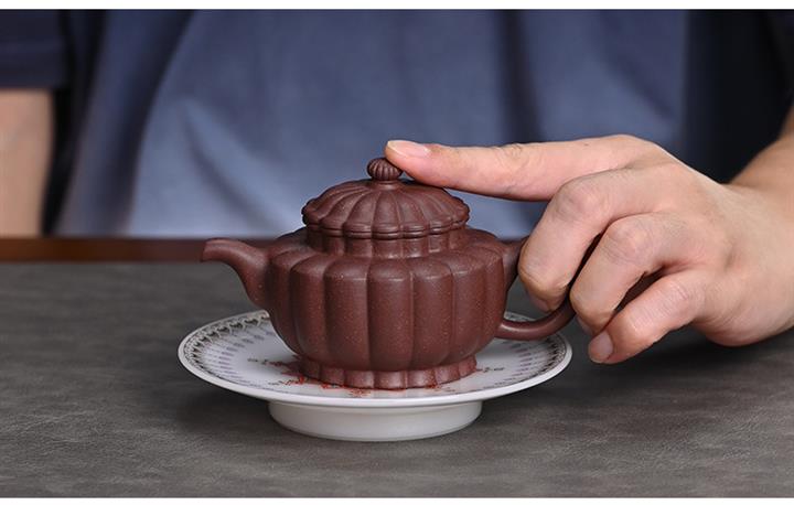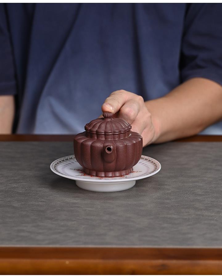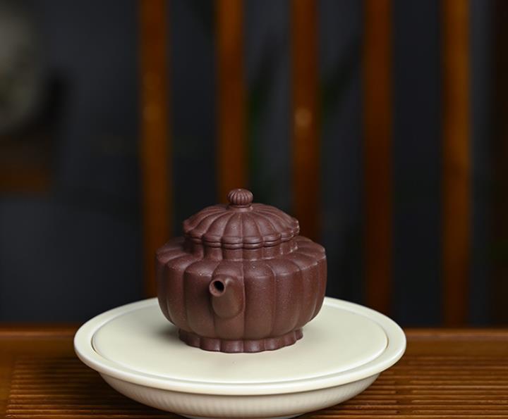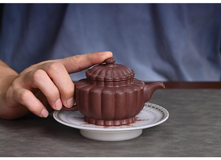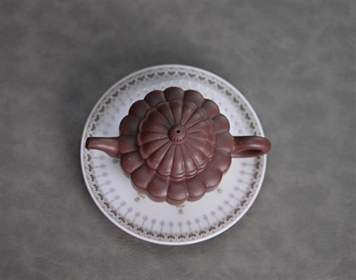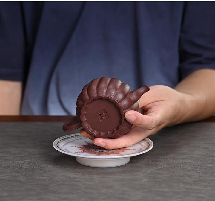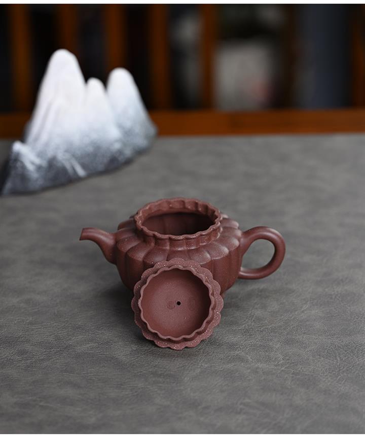 180cc原礦紫泥純手工折肩菊瓣筋紋茶壺POT9005