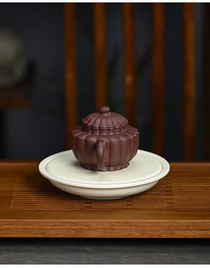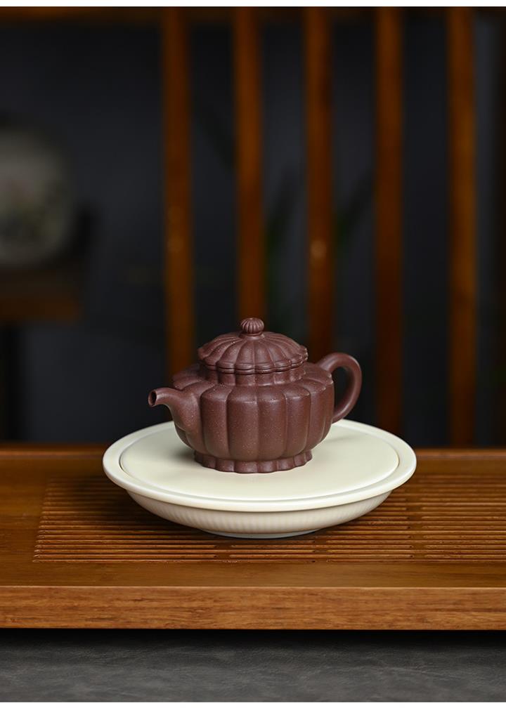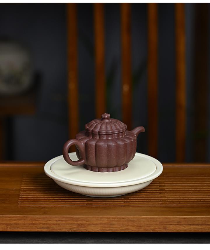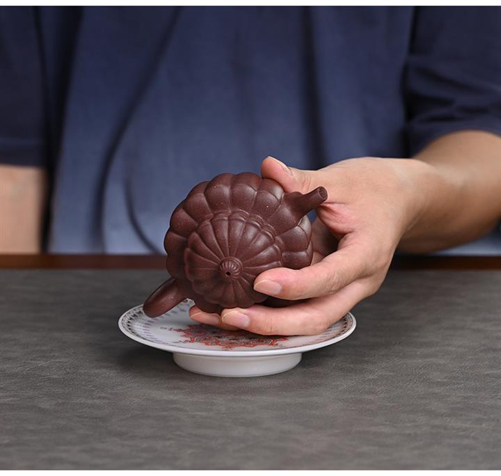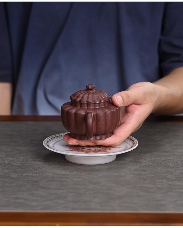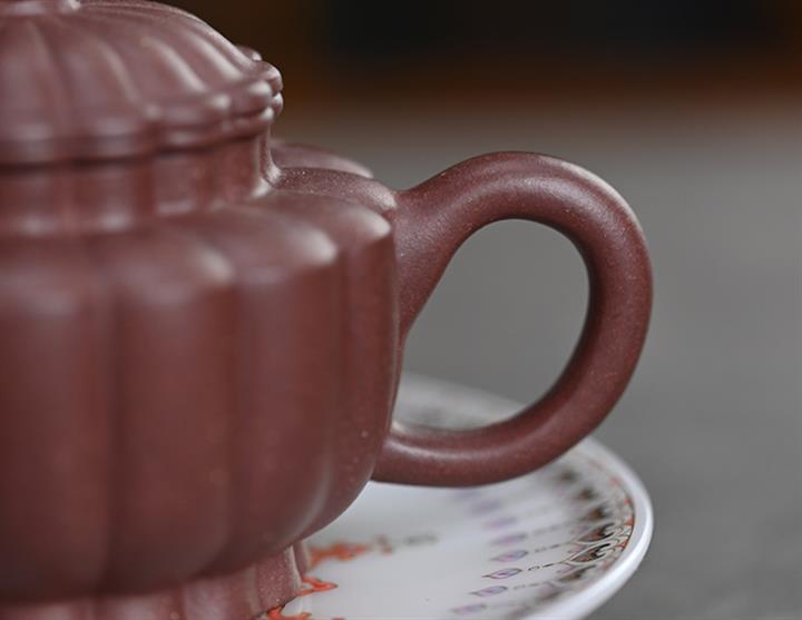 180cc原礦紫泥純手工折肩菊瓣筋紋茶壺POT9005