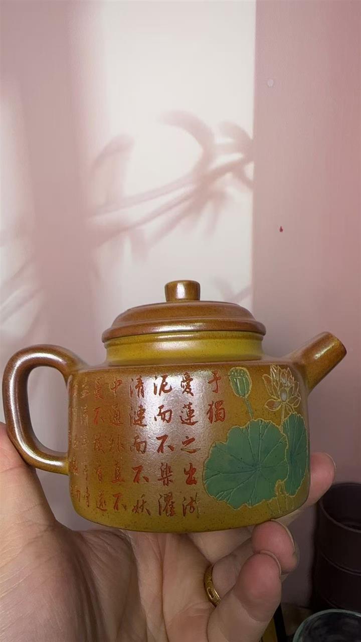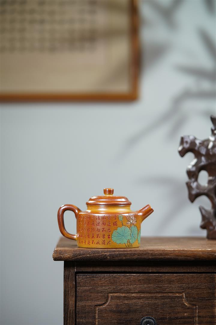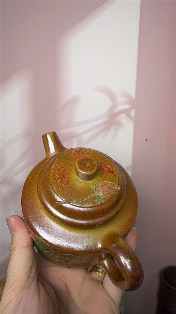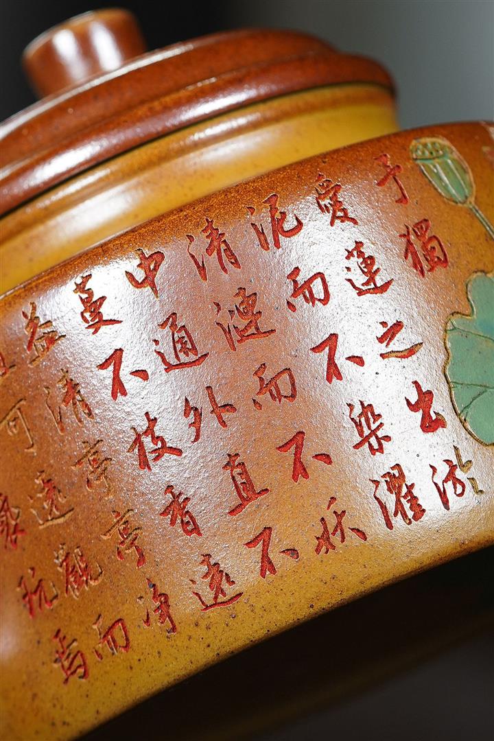 原礦鐵血紅砂刻字寒江茶壺POT7627