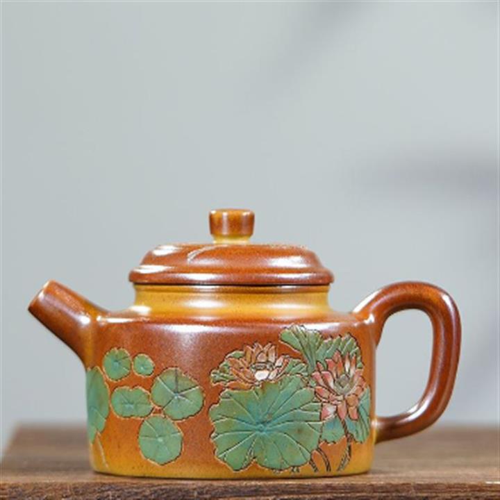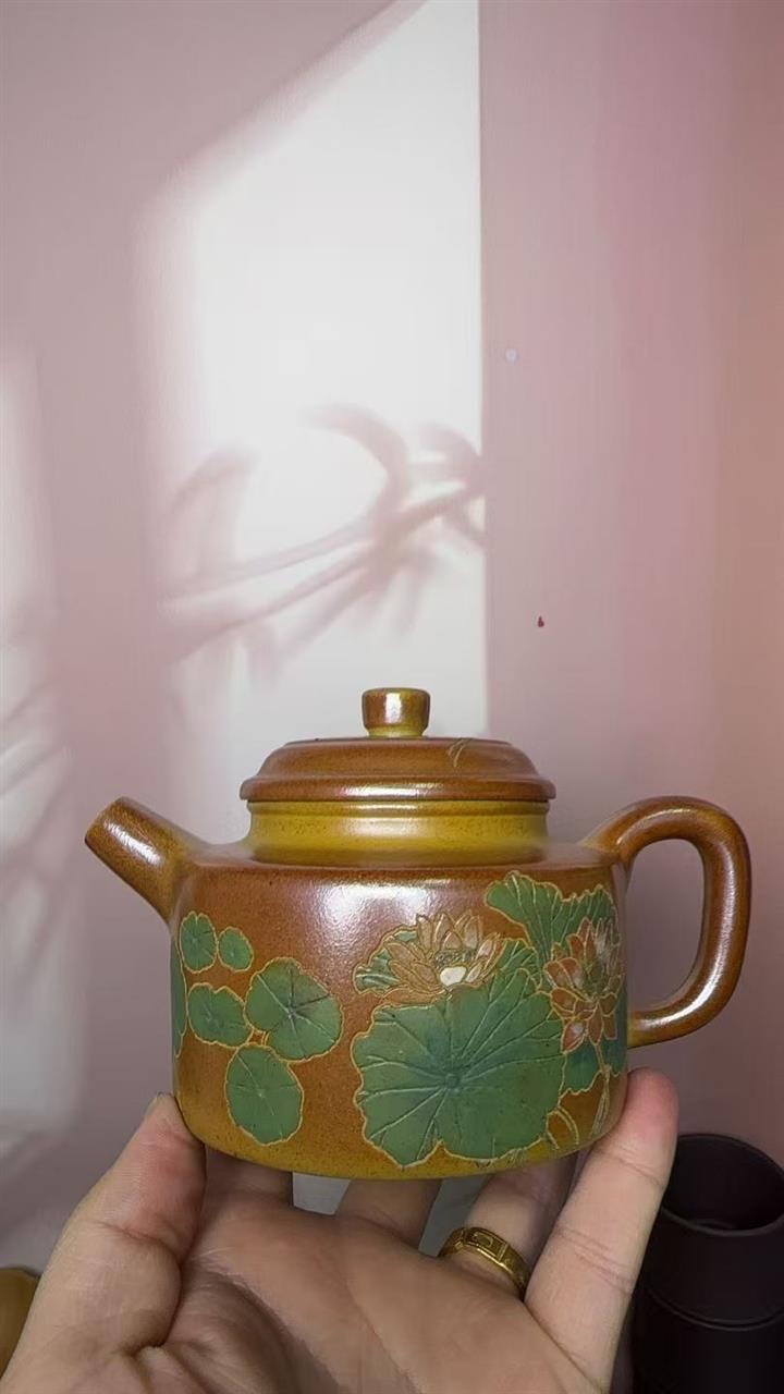 原礦綠泥刻繪花鳥宮燈茶壺POT7623