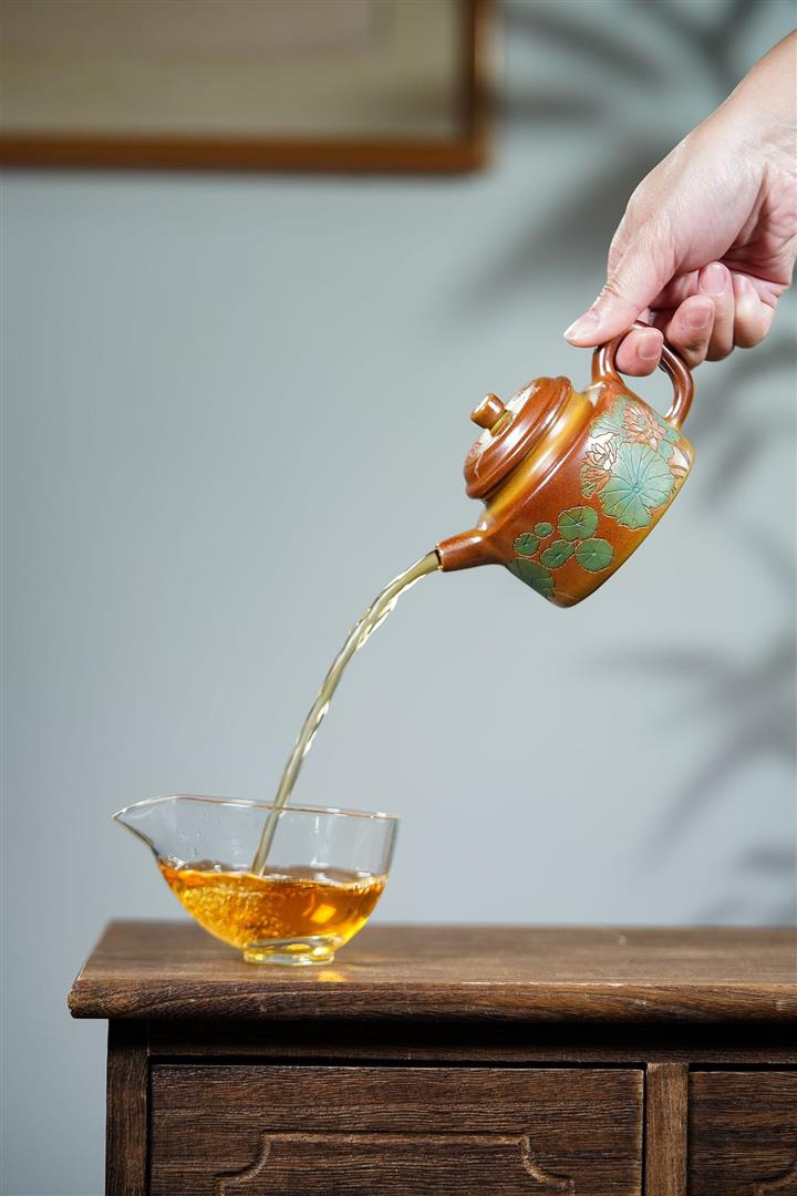 【泥料特點】砂土氣重,似淳實農民,日久使用,漸露鋒芒,養成變化,溫潤莊重。紫砂是壹種雙重氣孔結構的多孔性材質,氣孔微細,密度高。用紫砂壺沏茶,不失原味,且香不渙散,得茶之真香真味。紫砂使用越久,壺身色澤越發光亮照人,氣韻溫雅。紫砂壺長久使用器身會因撫摸擦拭,變得越發溫潤光澤。