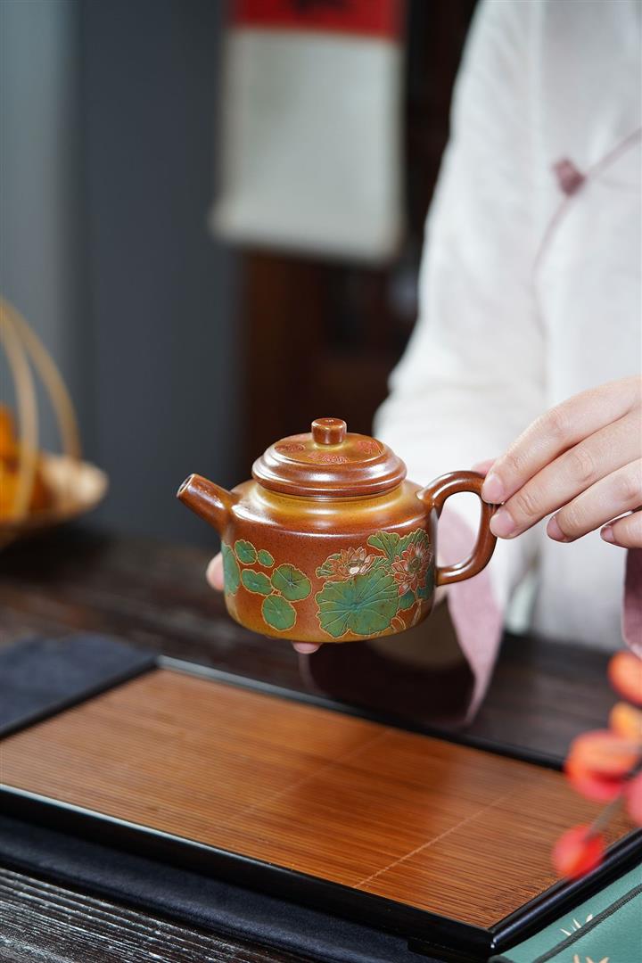 270cc原礦火雲燒荷花德鐘茶壺POT9010