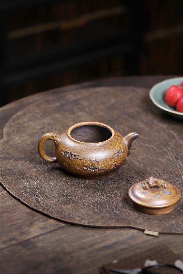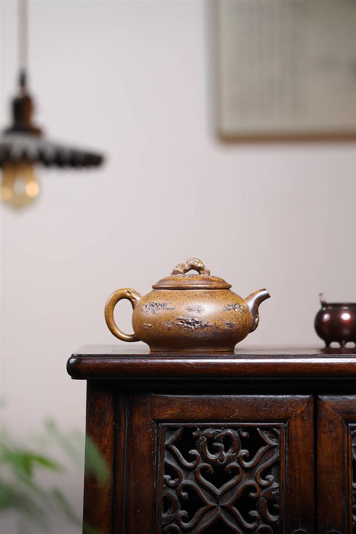 原礦石黃泥滿刻牛蓋茶壺POT7410