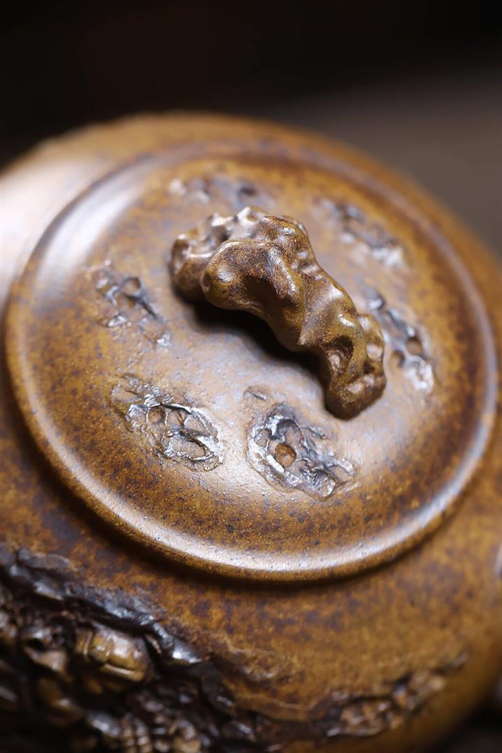 原礦石黃泥滿刻大周盤茶壺POT7411