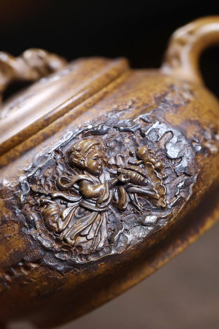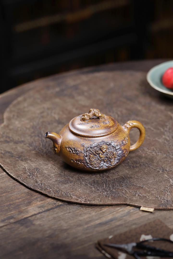 原礦龍骨金砂觀山滿刻華亭茶壺POT7417