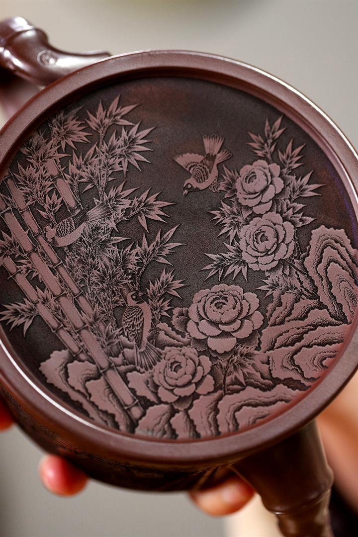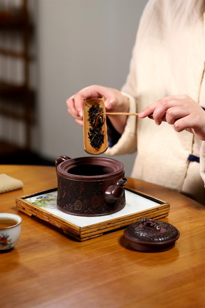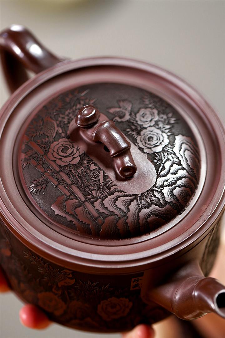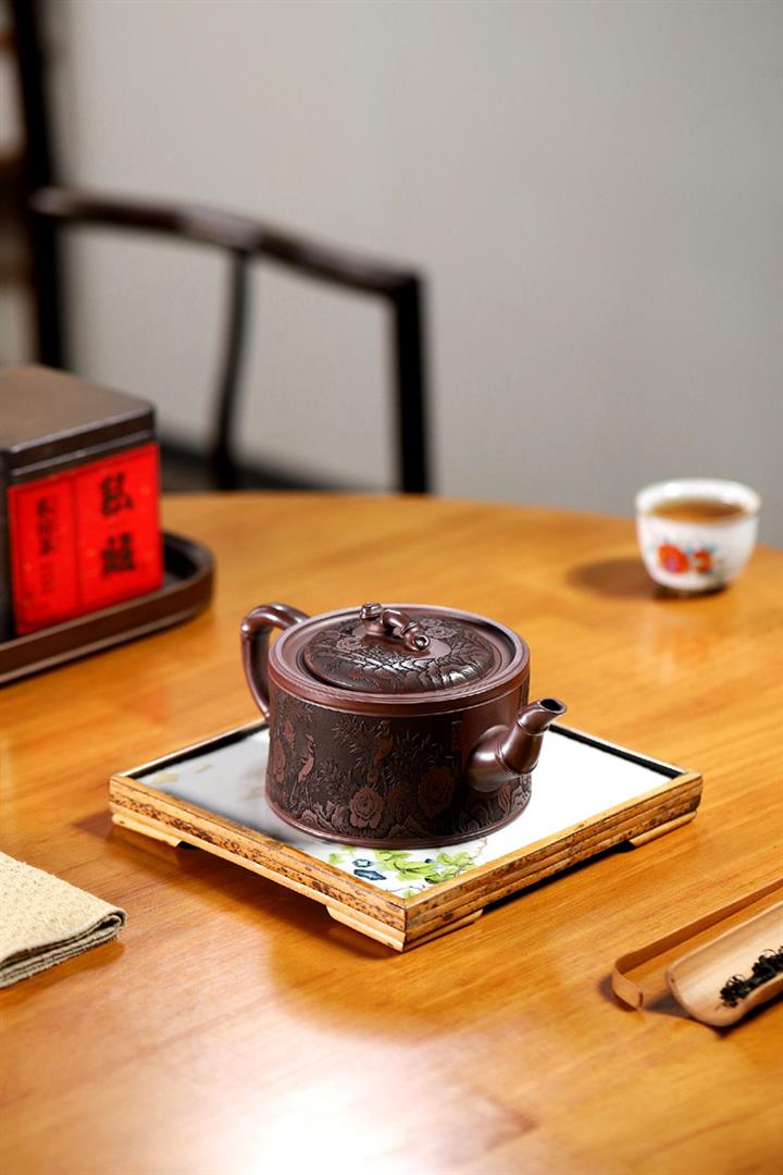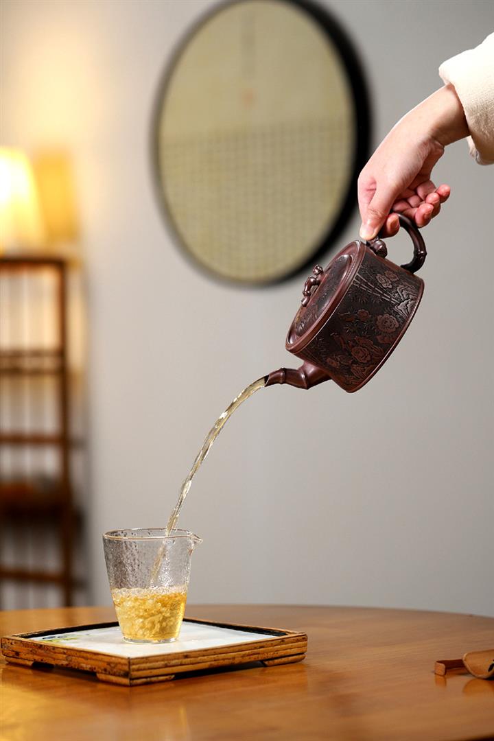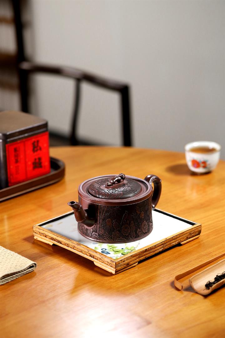 【泥料特點】砂土氣重,似淳實農民,日久使用,漸露鋒芒,養成變化,溫潤莊重。紫砂是壹種雙重氣孔結構的多孔性材質,氣孔微細,密度高。用紫砂壺沏茶,不失原味,且香不渙散,得茶之真香真味。紫砂使用越久,壺身色澤越發光亮照人,氣韻溫雅。紫砂壺長久使用器身會因撫摸擦拭,變得越發溫潤光澤。