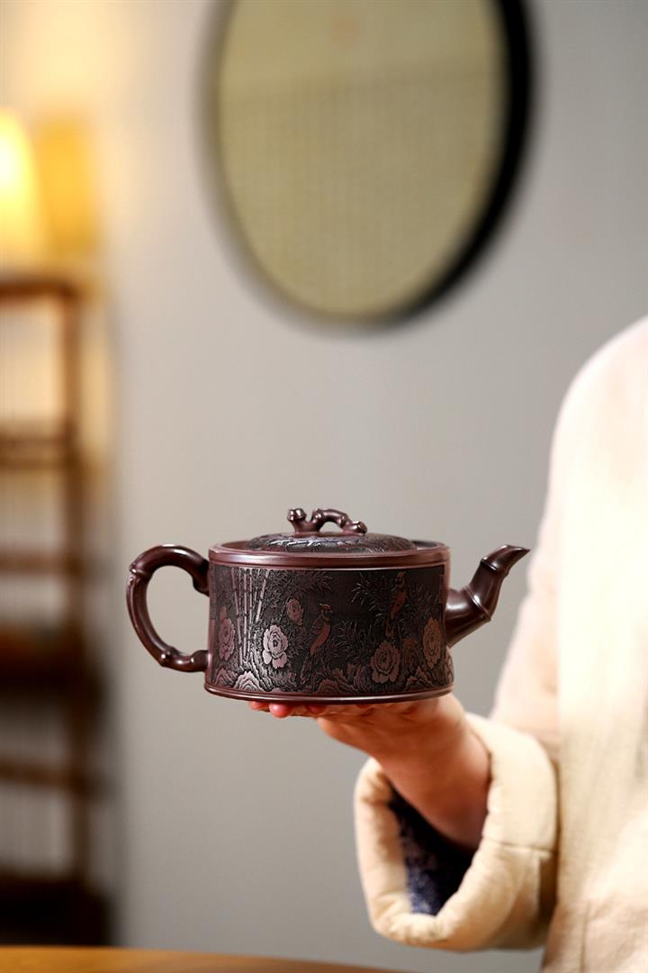 【作品介紹】此款壺形線條流暢,壺把,壺嘴,壺身壹氣呵成栩栩如生,是收藏把玩的好壺,泥料色澤古樸典雅,日久使用,漸露鋒芒,養成變化快,溫潤莊重,用其泡茶,使用的年代久,壺身就溫潤,泡出來的茶湯也就醇郁芳馨。