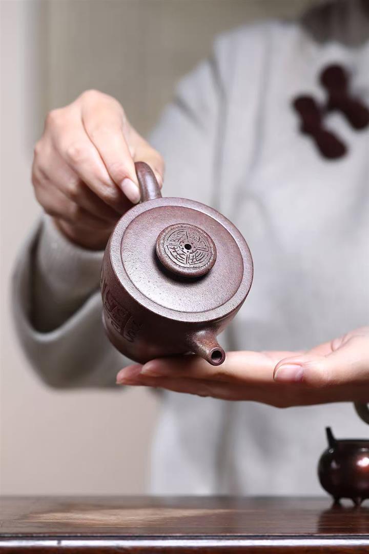 【泥料特點】砂土氣重,似淳實農民,日久使用,漸露鋒芒,養成變化,溫潤莊重。紫砂是壹種雙重氣孔結構的多孔性材質,氣孔微細,密度高。用紫砂壺沏茶,不失原味,且香不渙散,得茶之真香真味。紫砂使用越久,壺身色澤越發光亮照人,氣韻溫雅。紫砂壺長久使用器身會因撫摸擦拭,變得越發溫潤光澤。
