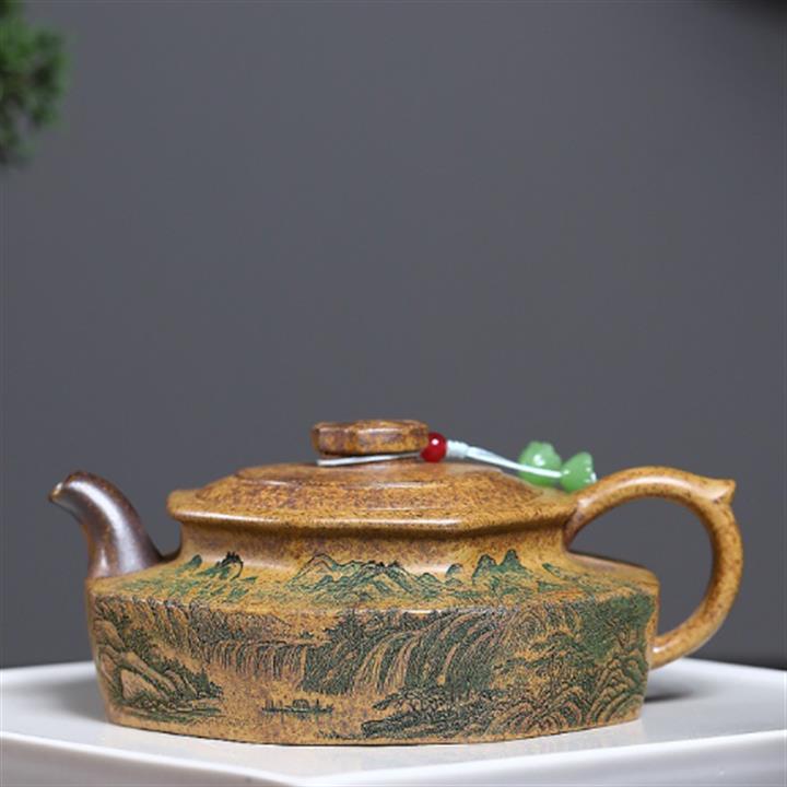 270cc原礦玄鐵石黃荷韻井欄泡茶壺POT8659