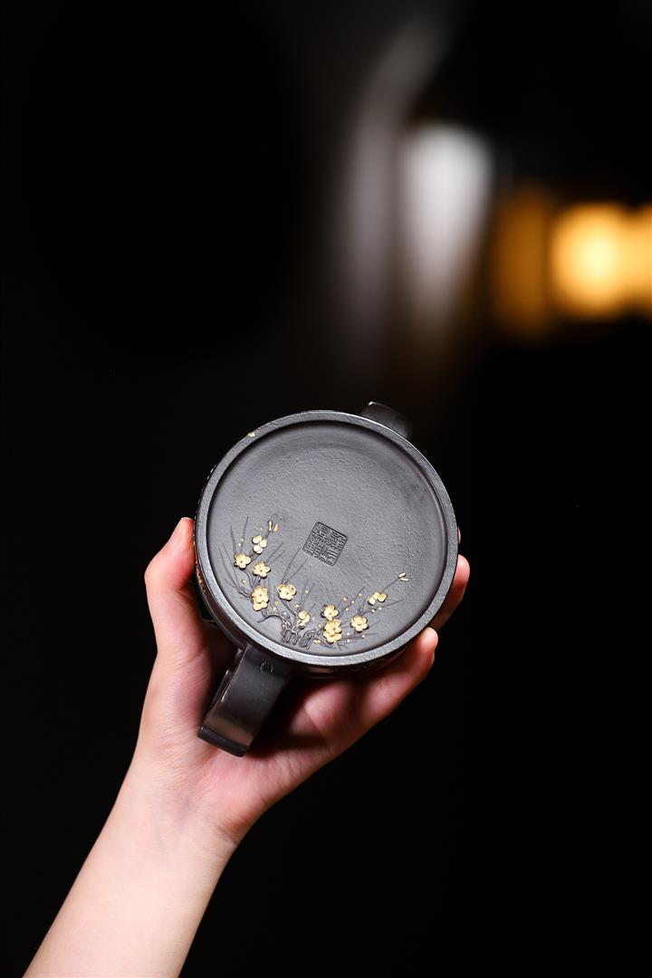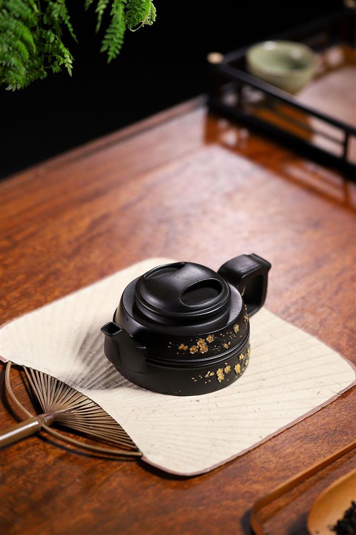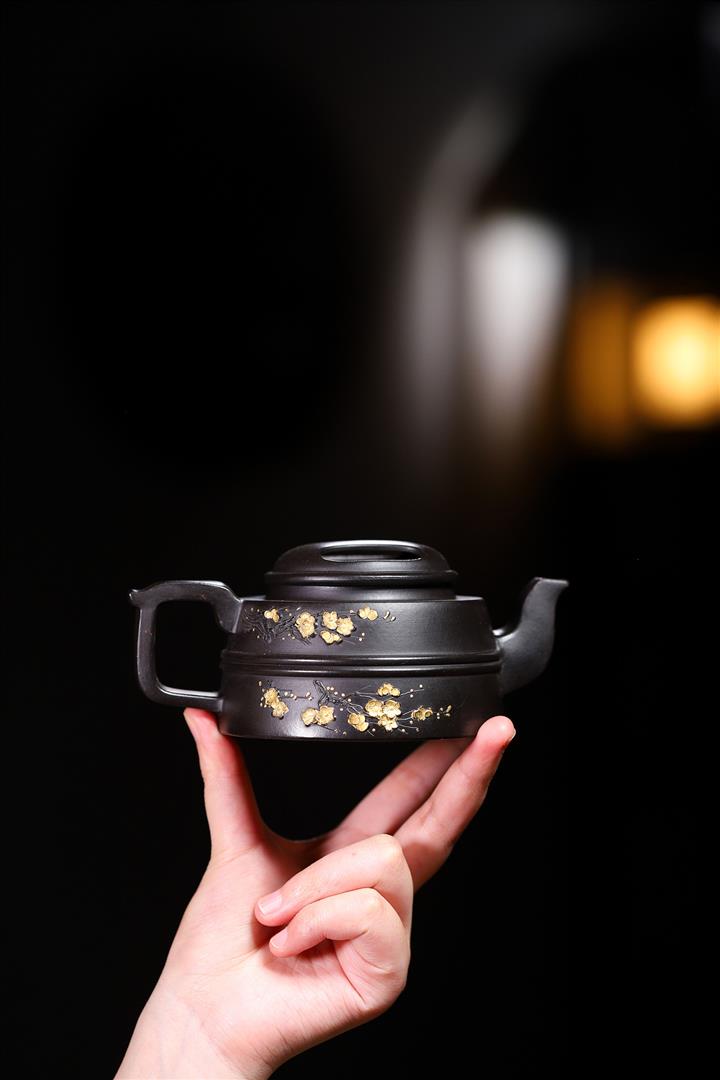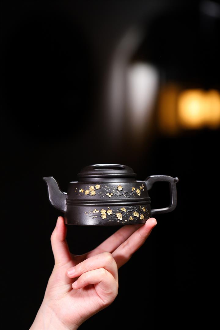 原礦百目紫泥手工描金寒江茶壺POT7071
