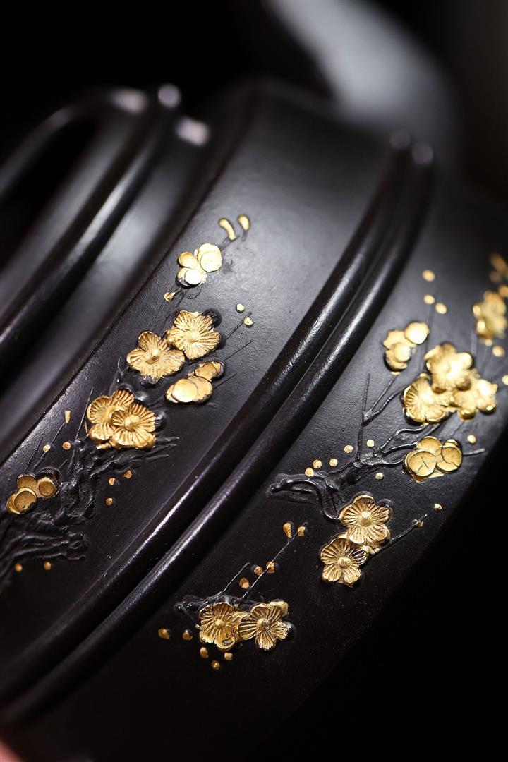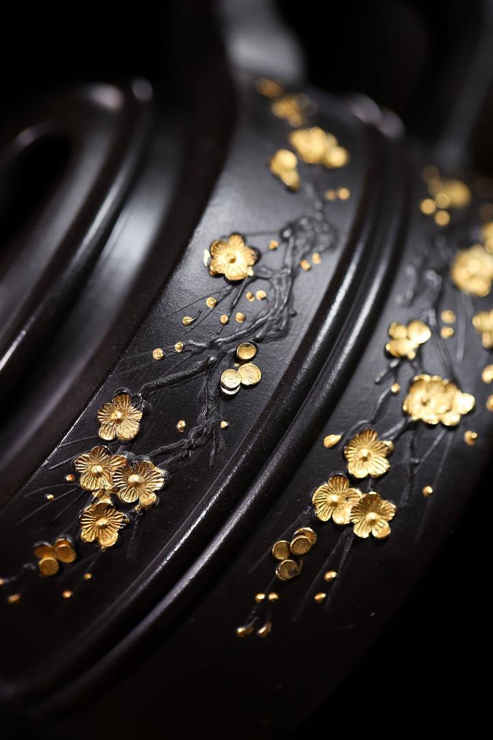 220cc原礦 大紅袍還原燒堆繪金梅花牛蓋茶壺POT9030