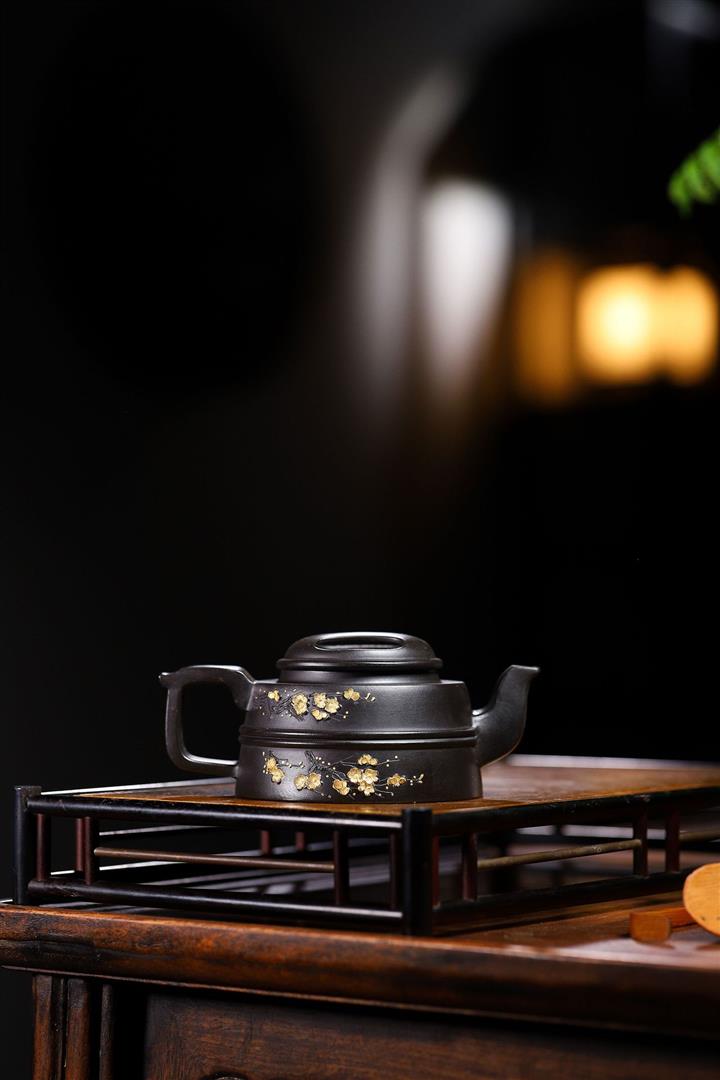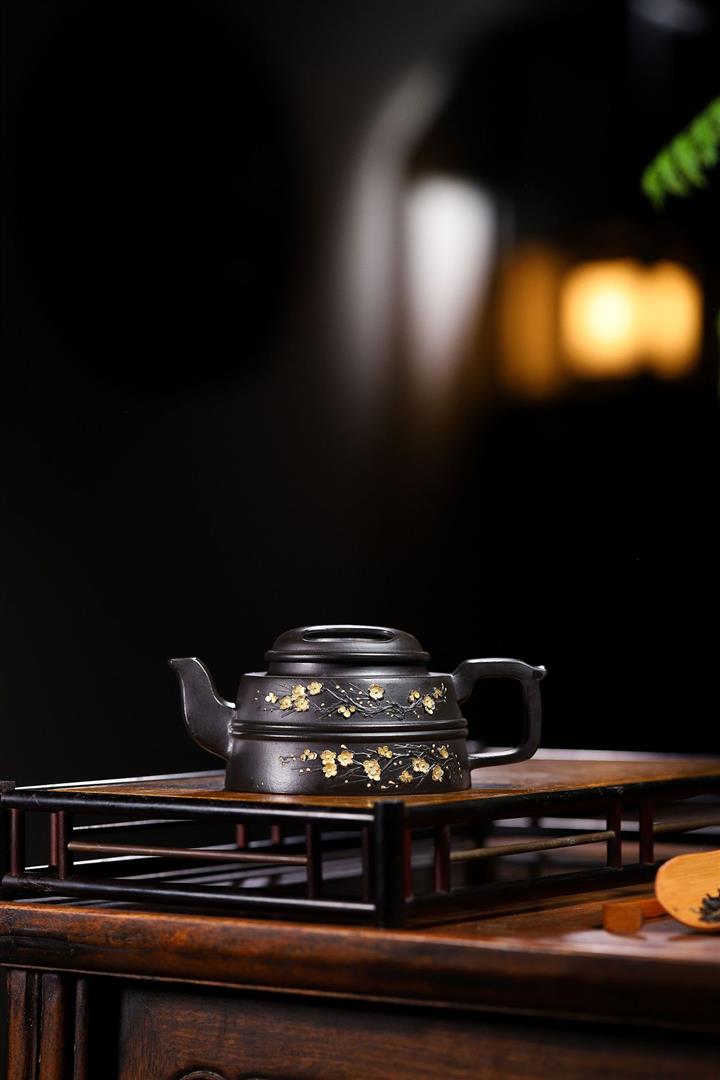 原礦百目紫泥手工描金明爐茶壺POT7073