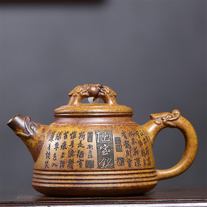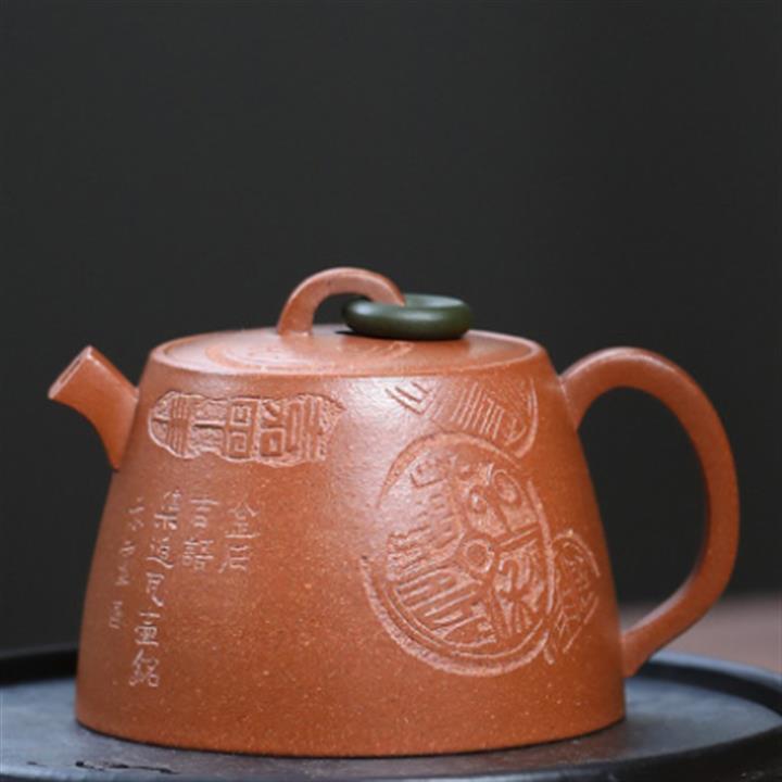 280cc原礦大紅袍堆繪金梅秦權泡茶壺POT9695