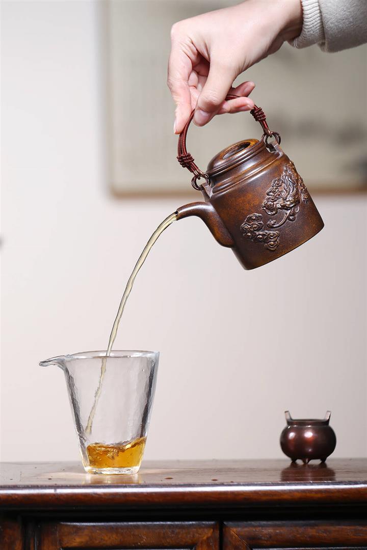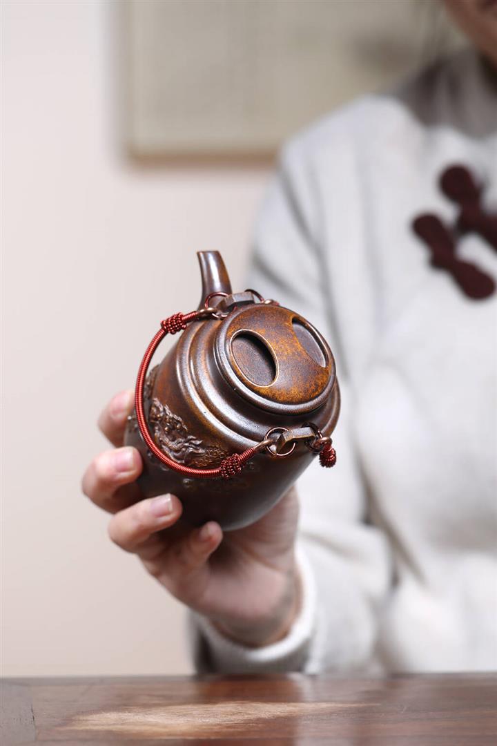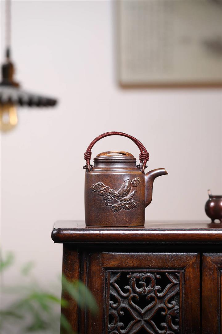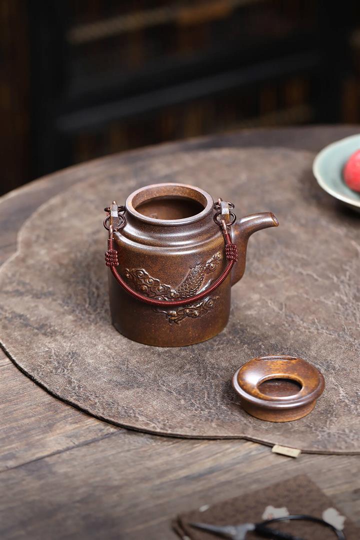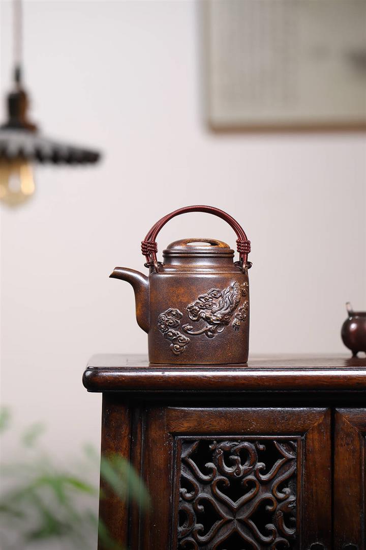 龍窑段泥柴燒雲起提梁紫砂壺POT5560