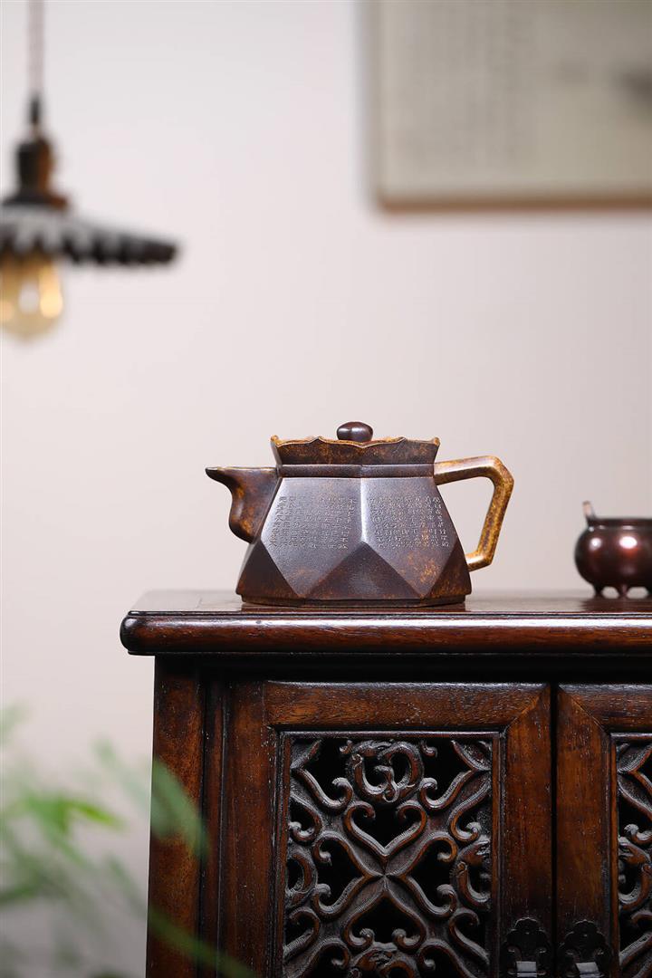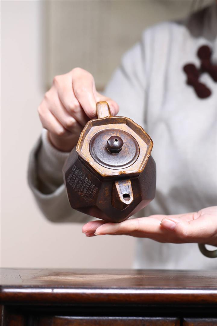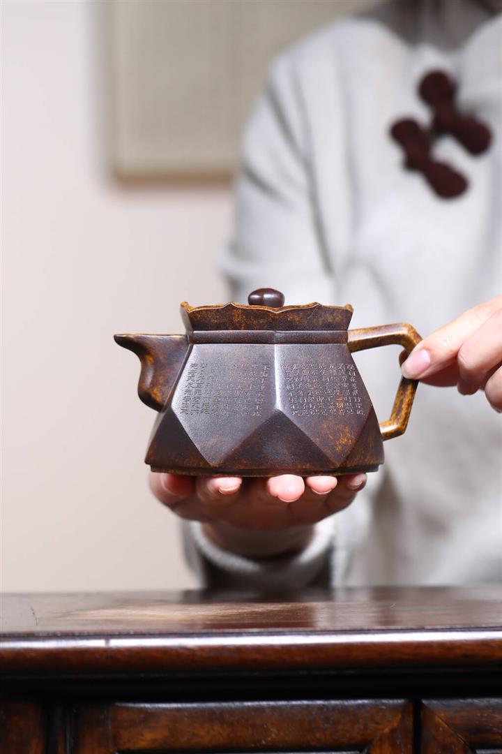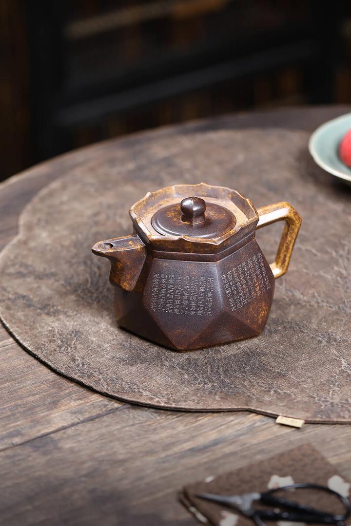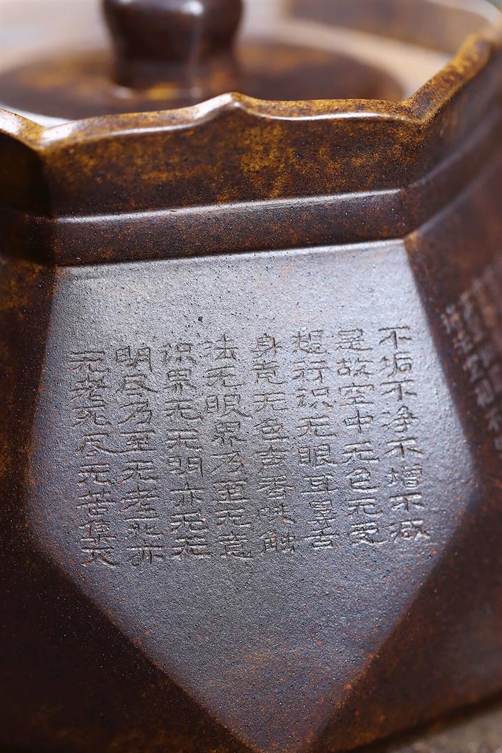 原礦全手工龍背青六方壺中乾坤井欄鳳鳴紫砂壺 270cc pot3645