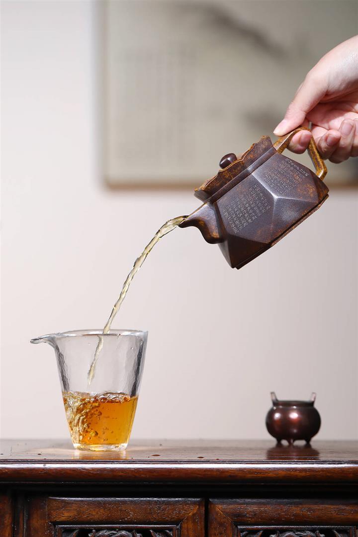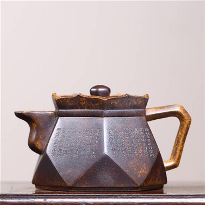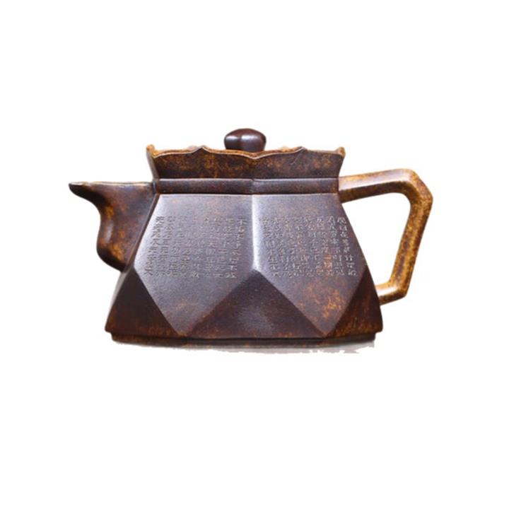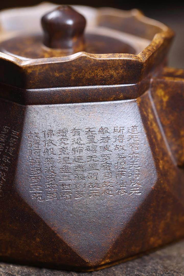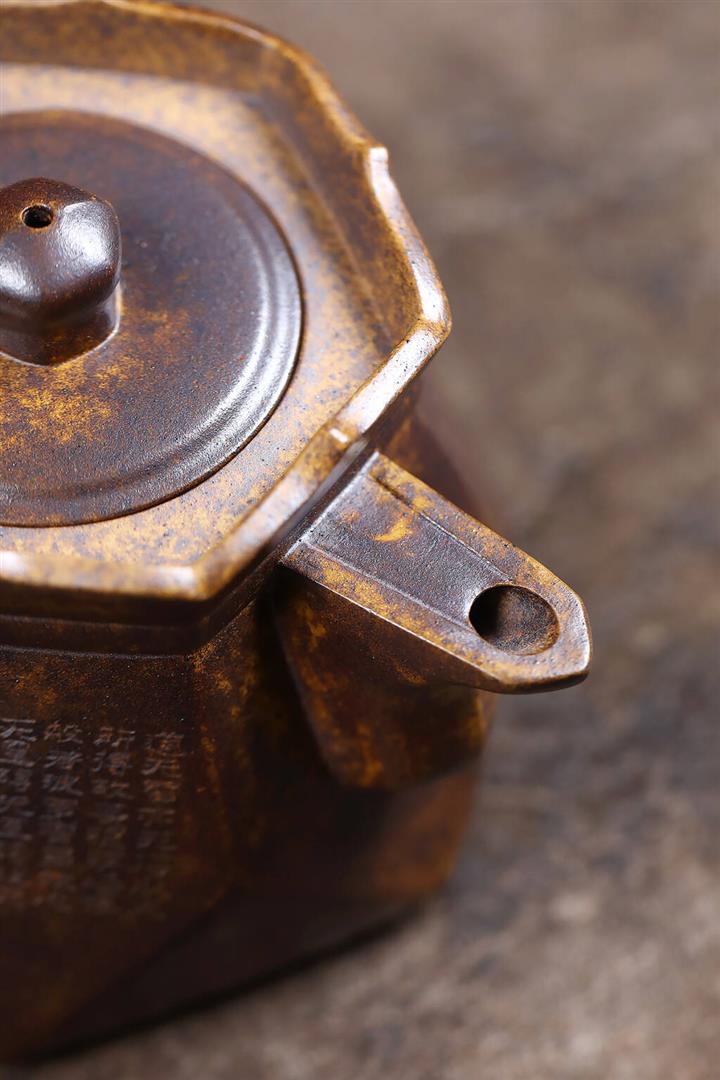 紫泥刻繪八方秦權紫砂壺大容量茶壺300cc pot3644