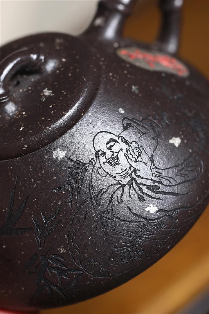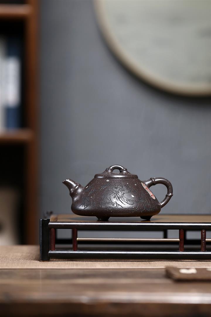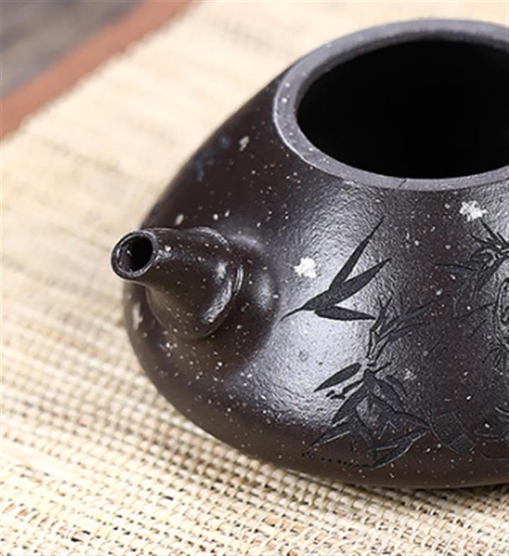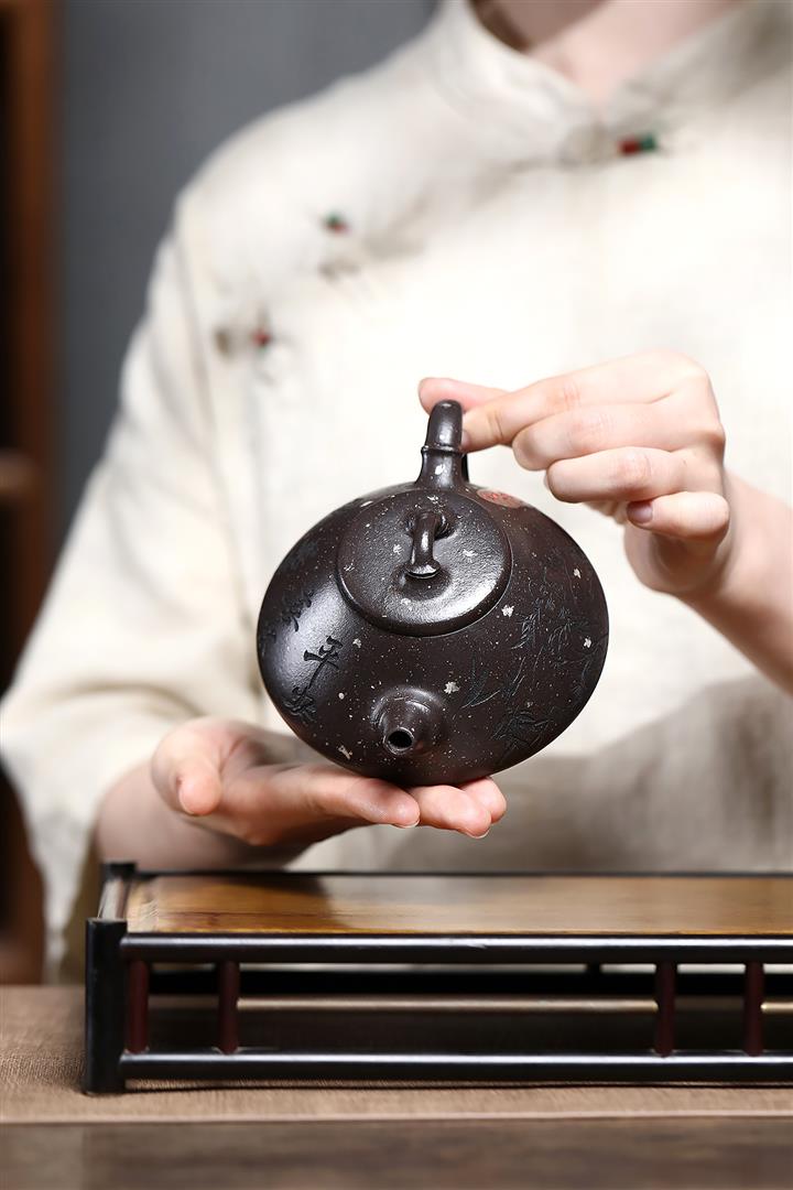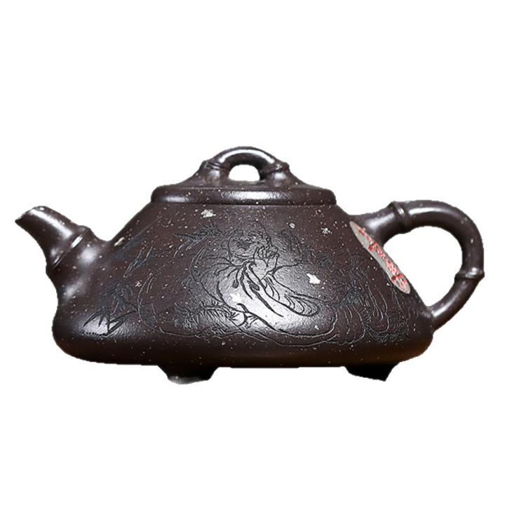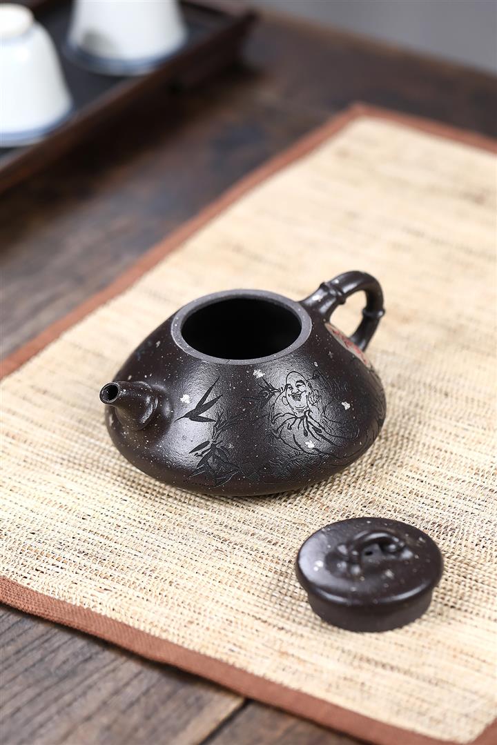 240cc描銀鋪砂雪花紫泥竹韻石瓢茶壺POT9040