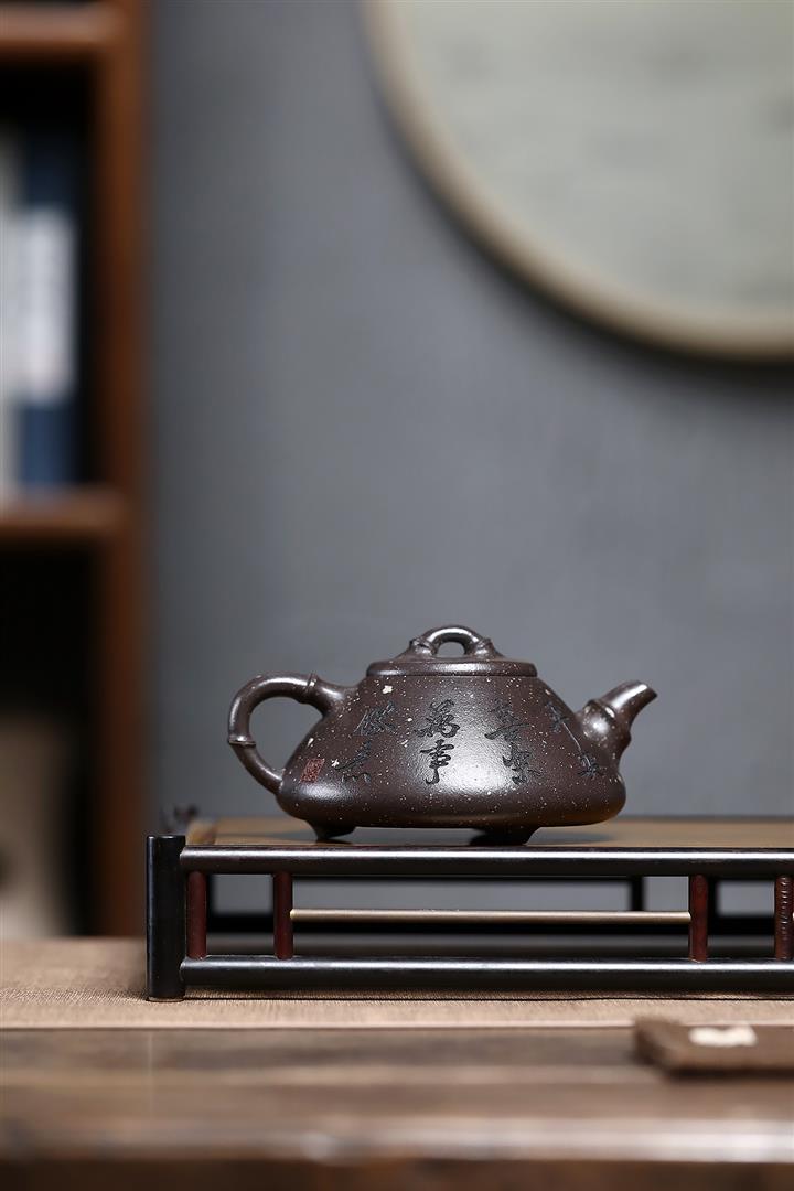 【作品介紹】此款壺形線條流暢,壺把,壺嘴,壺身壹氣呵成栩栩如生,是收藏把玩的好壺,泥料色澤古樸典雅,日久使用,漸露鋒芒,養成變化快,溫潤莊重,用其泡茶,使用的年代久,壺身就溫潤,泡出來的茶湯也就醇郁芳馨。