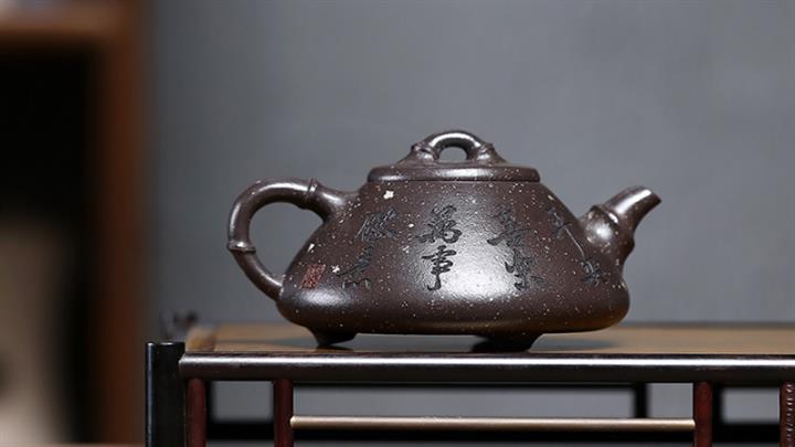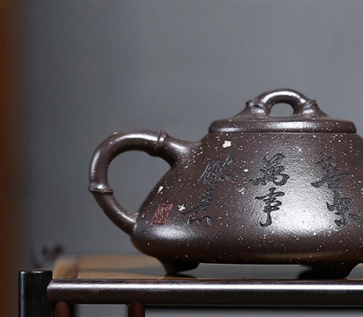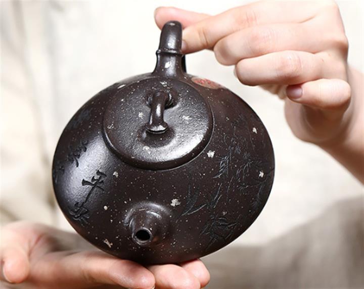 【泥料特點】砂土氣重,似淳實農民,日久使用,漸露鋒芒,養成變化,溫潤莊重。紫砂是壹種雙重氣孔結構的多孔性材質,氣孔微細,密度高。用紫砂壺沏茶,不失原味,且香不渙散,得茶之真香真味。紫砂使用越久,壺身色澤越發光亮照人,氣韻溫雅。紫砂壺長久使用器身會因撫摸擦拭,變得越發溫潤光澤。