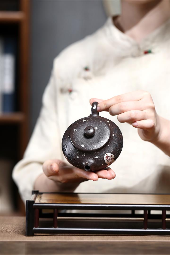 【泥料特點】砂土氣重,似淳實農民,日久使用,漸露鋒芒,養成變化,溫潤莊重。紫砂是壹種雙重氣孔結構的多孔性材質,氣孔微細,密度高。用紫砂壺沏茶,不失原味,且香不渙散,得茶之真香真味。紫砂使用越久,壺身色澤越發光亮照人,氣韻溫雅。紫砂壺長久使用器身會因撫摸擦拭,變得越發溫潤光澤。