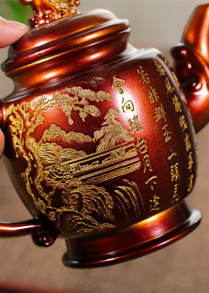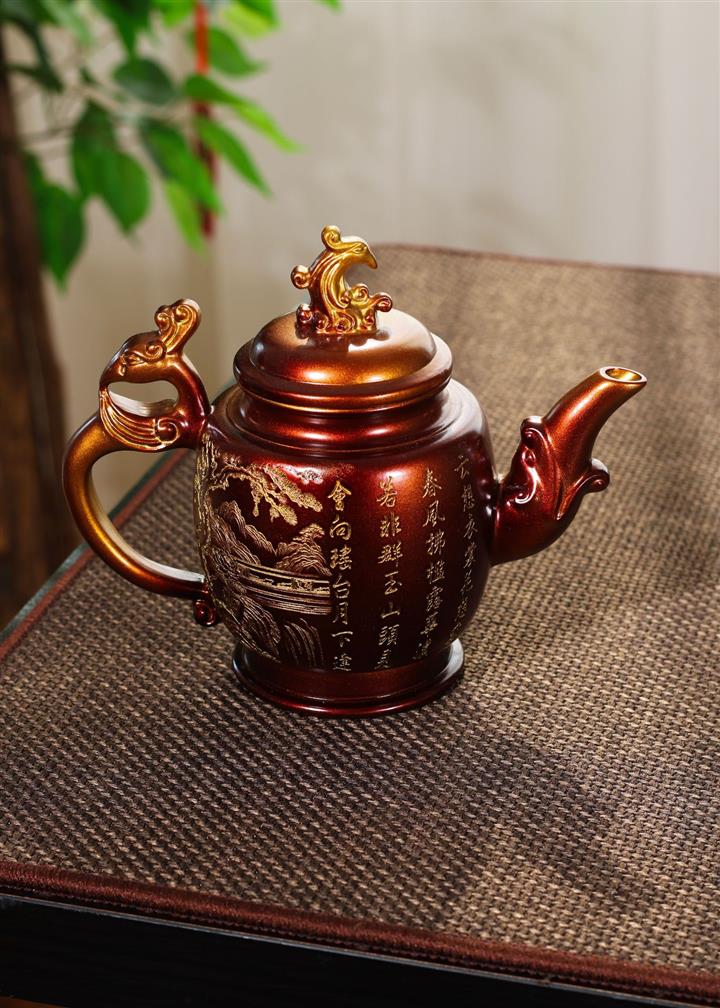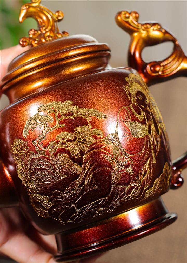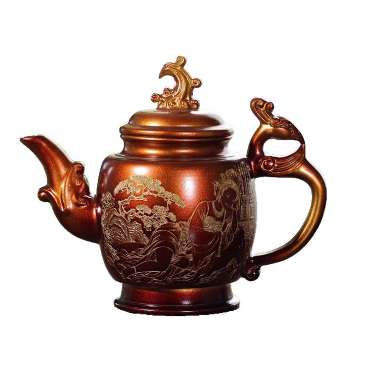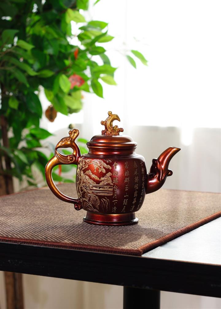 650cc原礦貝殼燒段泥滿刻龍鳳呈祥茶壺POT9046