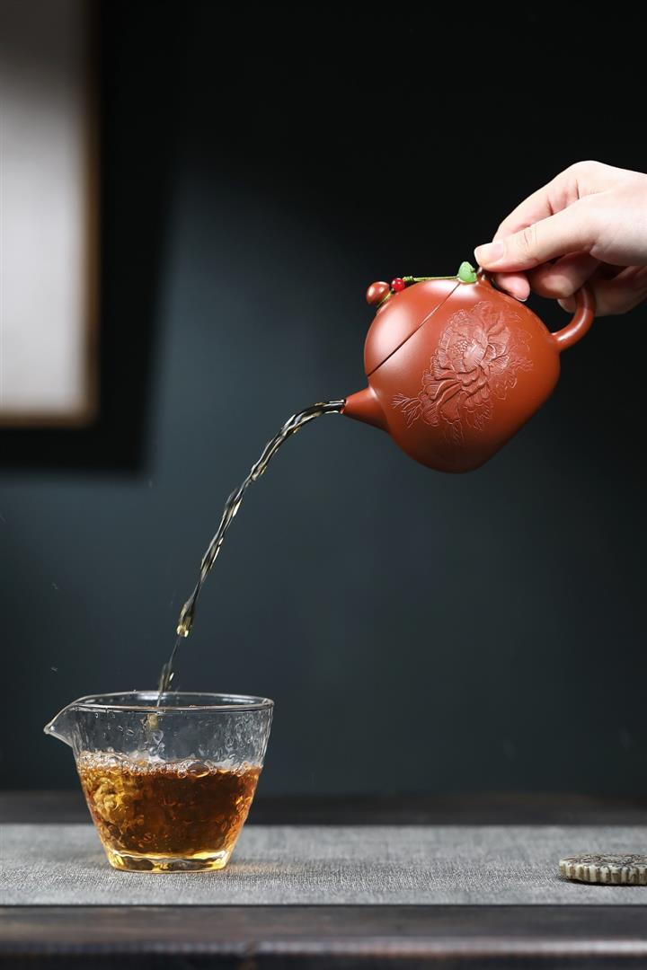 【泥料特點】砂土氣重,似淳實農民,日久使用,漸露鋒芒,養成變化,溫潤莊重。紫砂是壹種雙重氣孔結構的多孔性材質,氣孔微細,密度高。用紫砂壺沏茶,不失原味,且香不渙散,得茶之真香真味。紫砂使用越久,壺身色澤越發光亮照人,氣韻溫雅。紫砂壺長久使用器身會因撫摸擦拭,變得越發溫潤光澤。