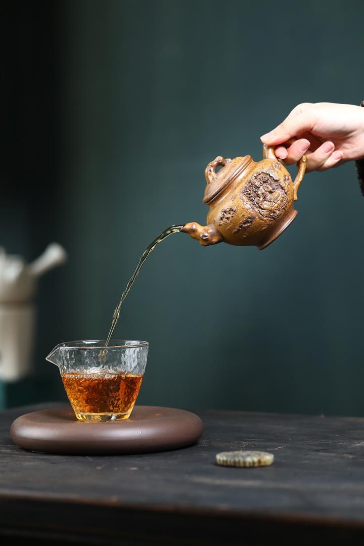 【泥料特點】砂土氣重,似淳實農民,日久使用,漸露鋒芒,養成變化,溫潤莊重。紫砂是壹種雙重氣孔結構的多孔性材質,氣孔微細,密度高。用紫砂壺沏茶,不失原味,且香不渙散,得茶之真香真味。紫砂使用越久,壺身色澤越發光亮照人,氣韻溫雅。紫砂壺長久使用器身會因撫摸擦拭,變得越發溫潤光澤。