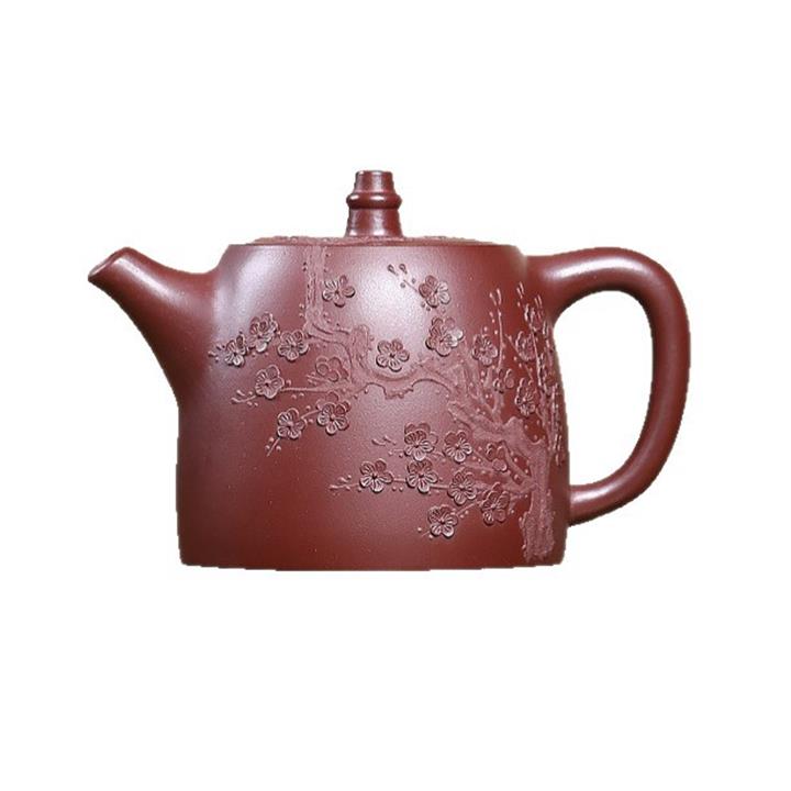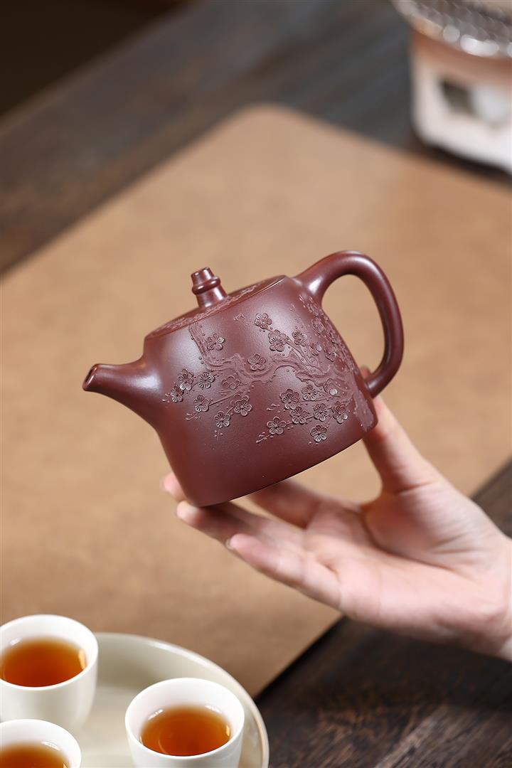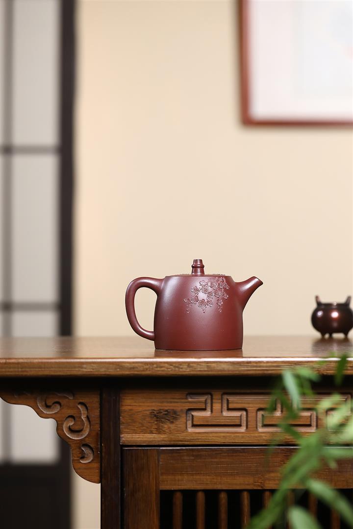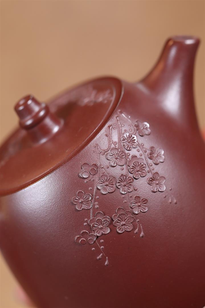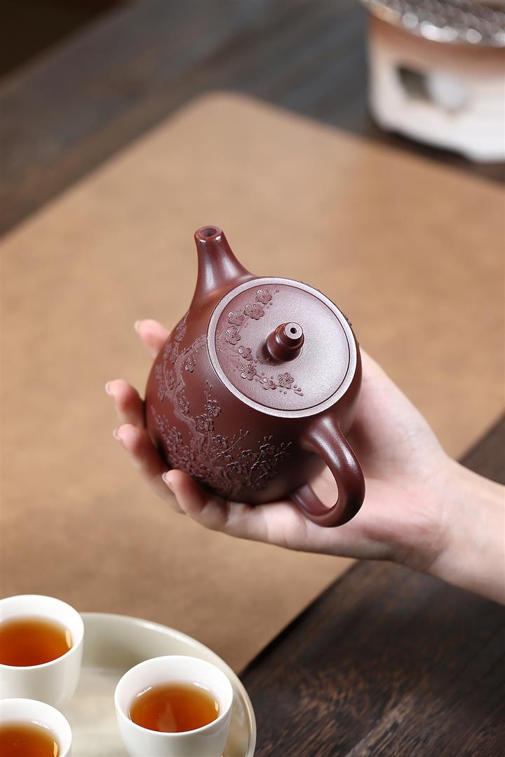 原礦朱泥紫砂壺手工刻繪扁瓢壺POT4043