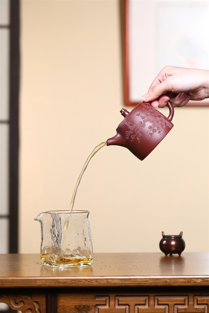 【泥料特點】砂土氣重,似淳實農民,日久使用,漸露鋒芒,養成變化,溫潤莊重。紫砂是壹種雙重氣孔結構的多孔性材質,氣孔微細,密度高。用紫砂壺沏茶,不失原味,且香不渙散,得茶之真香真味。紫砂使用越久,壺身色澤越發光亮照人,氣韻溫雅。紫砂壺長久使用器身會因撫摸擦拭,變得越發溫潤光澤。