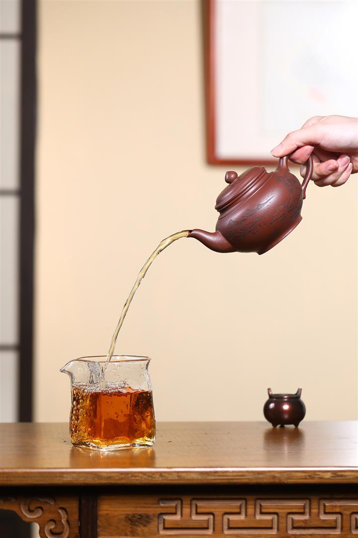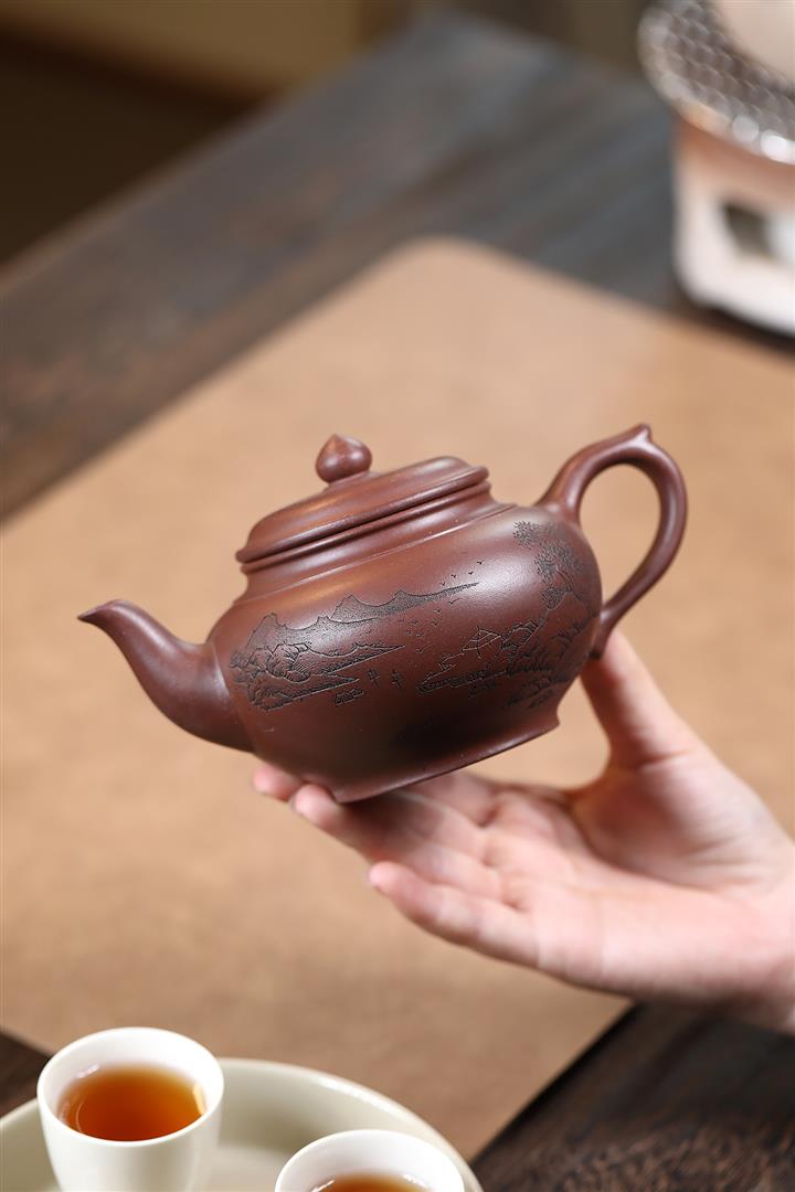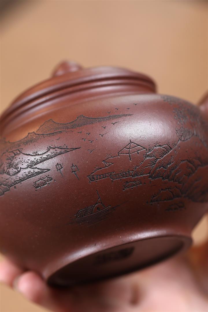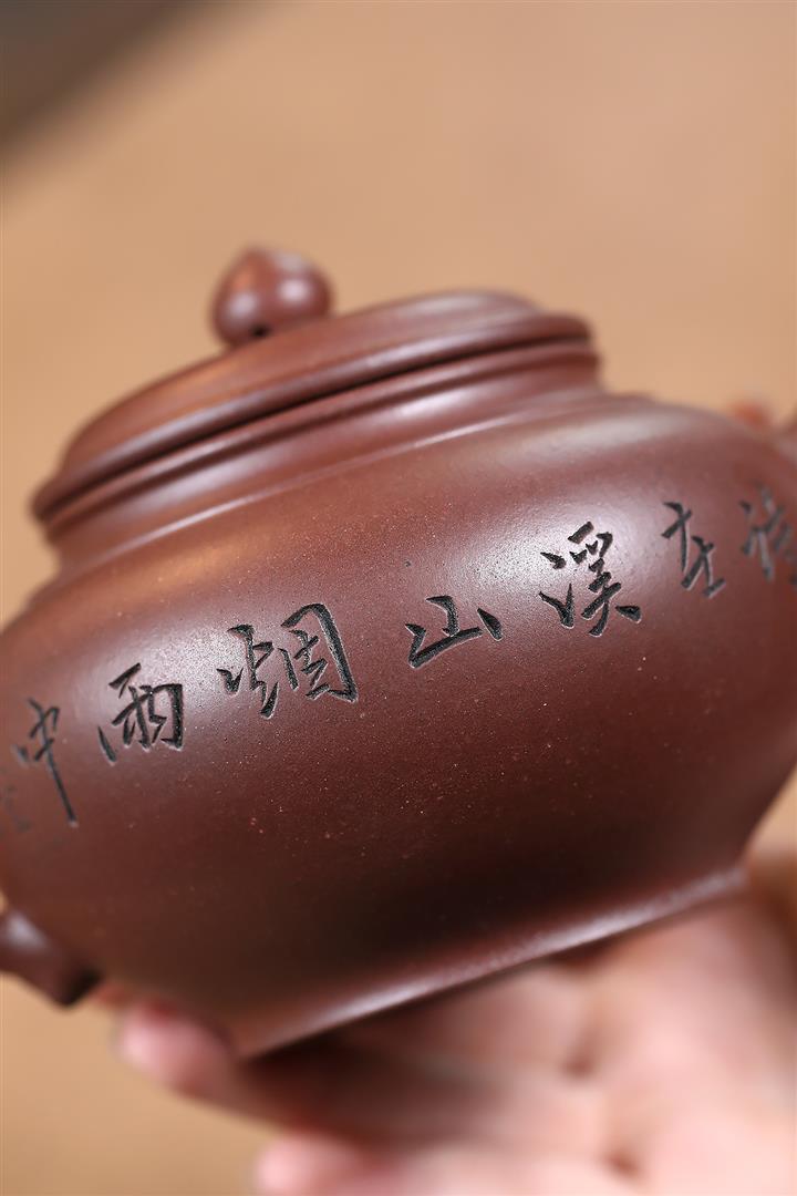 原礦大紅袍手工刻字金潘茶壺POT7120