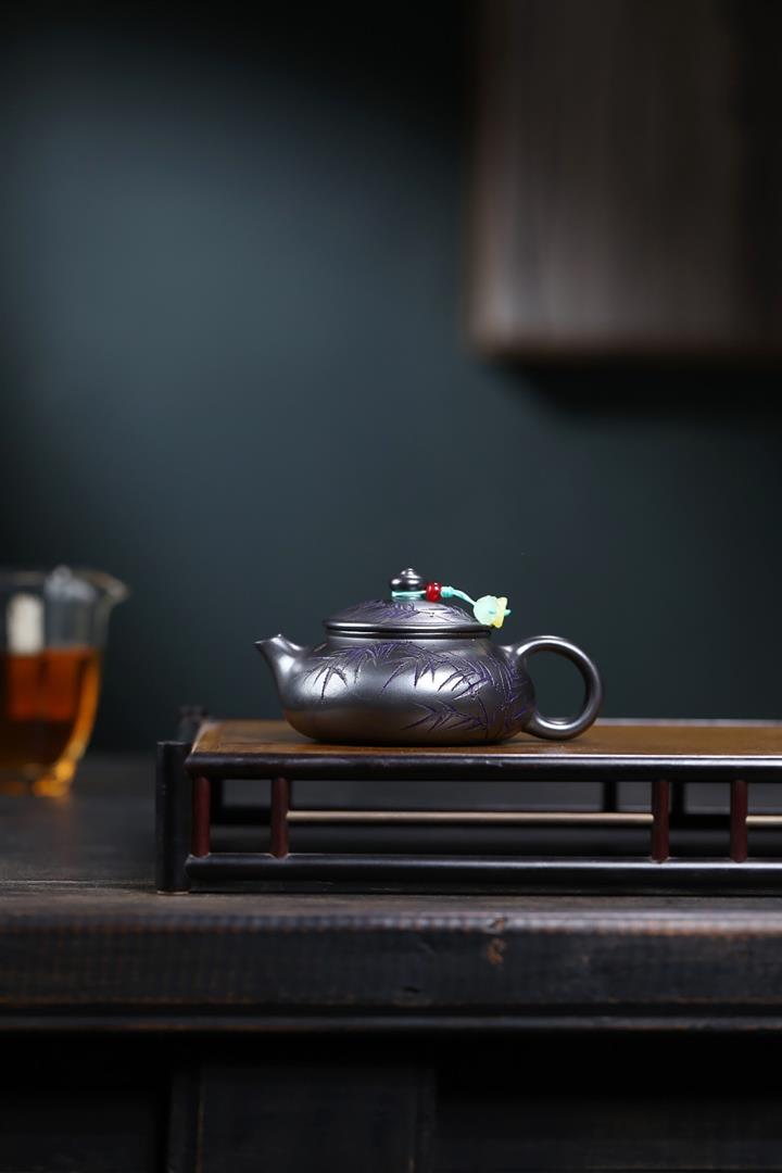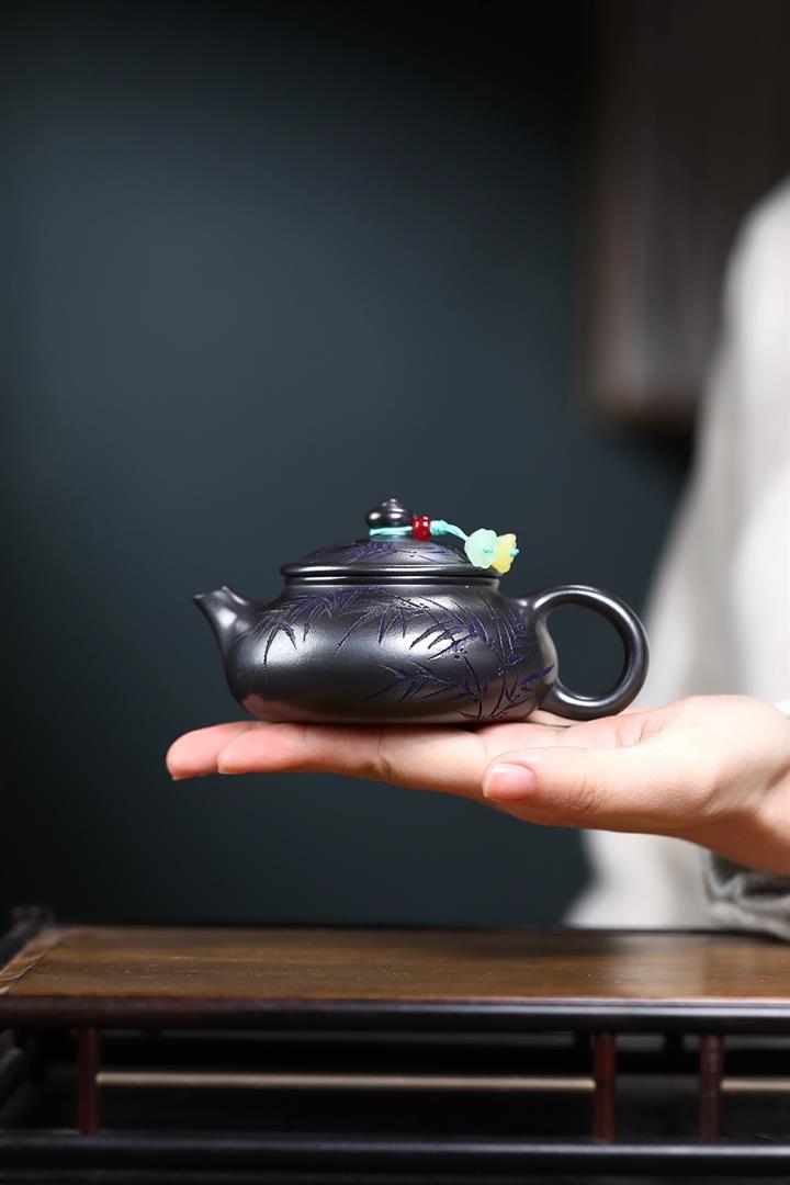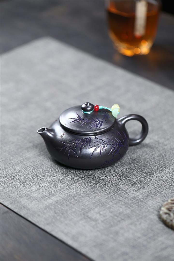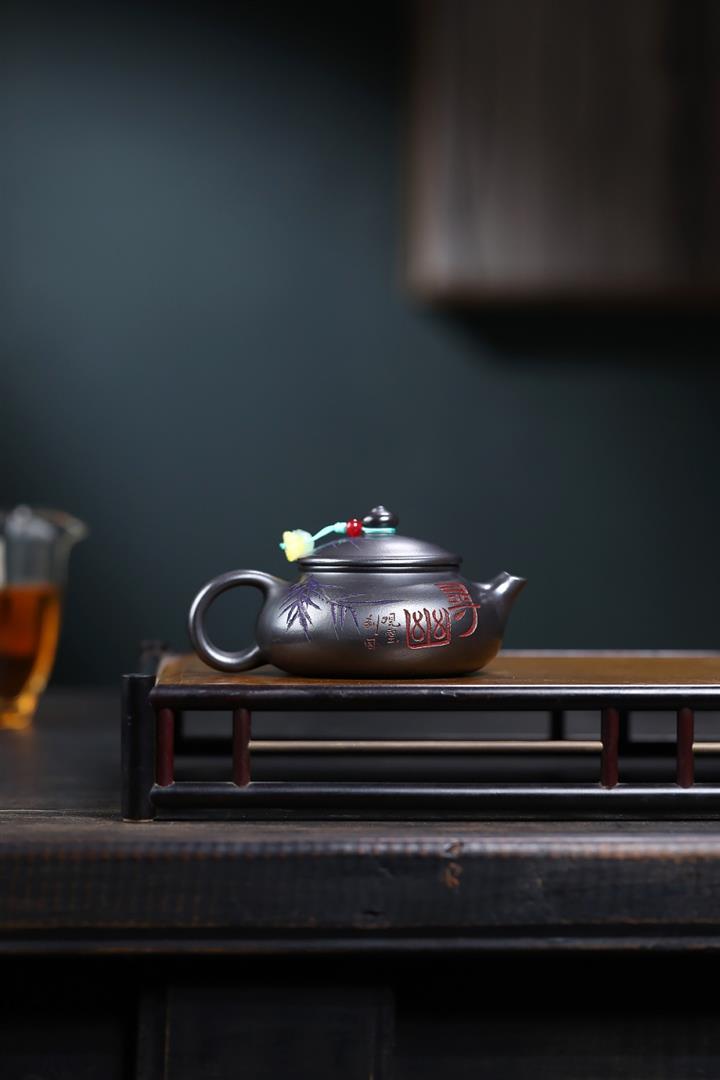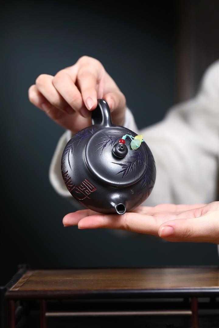 宮燈紫砂壺原礦黑金剛匠心手製茶壺茶具POT3997