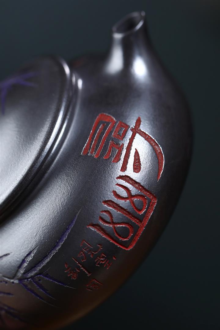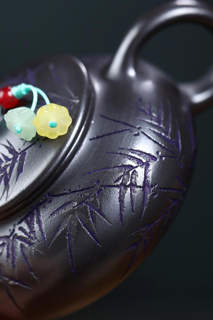 紫砂壺茶壺名家全純手工貼花泥繪原礦清水泥松果花壺POT3916