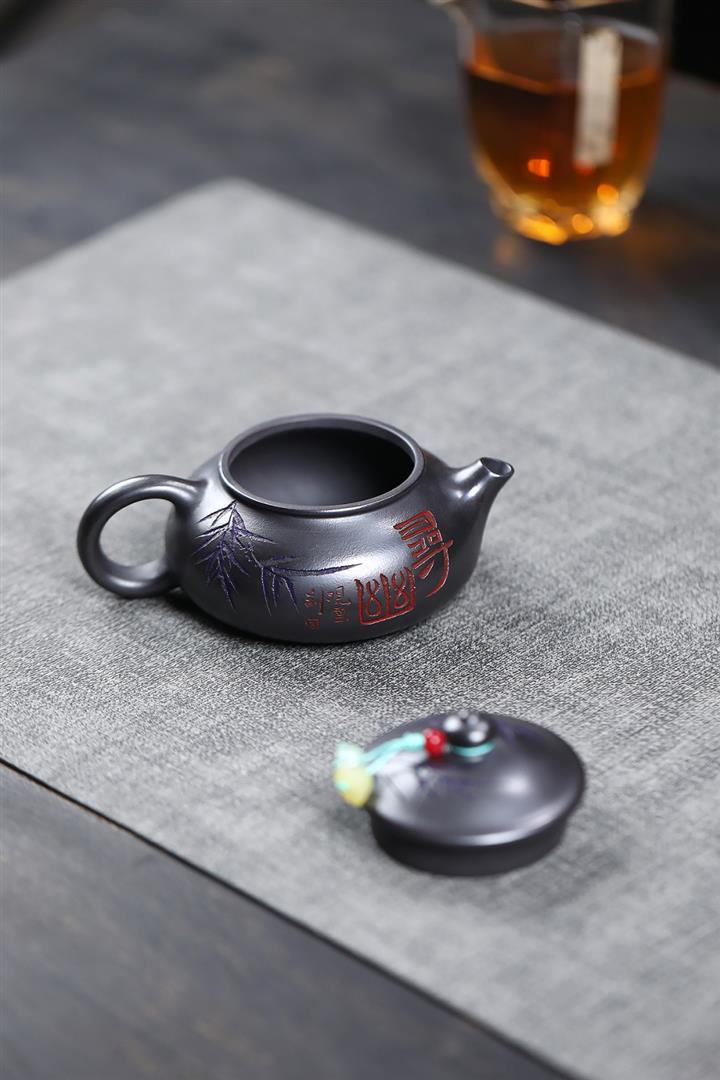 手工製原礦紫砂泥繪山水側把壺泡茶壺功夫茶具POT3915